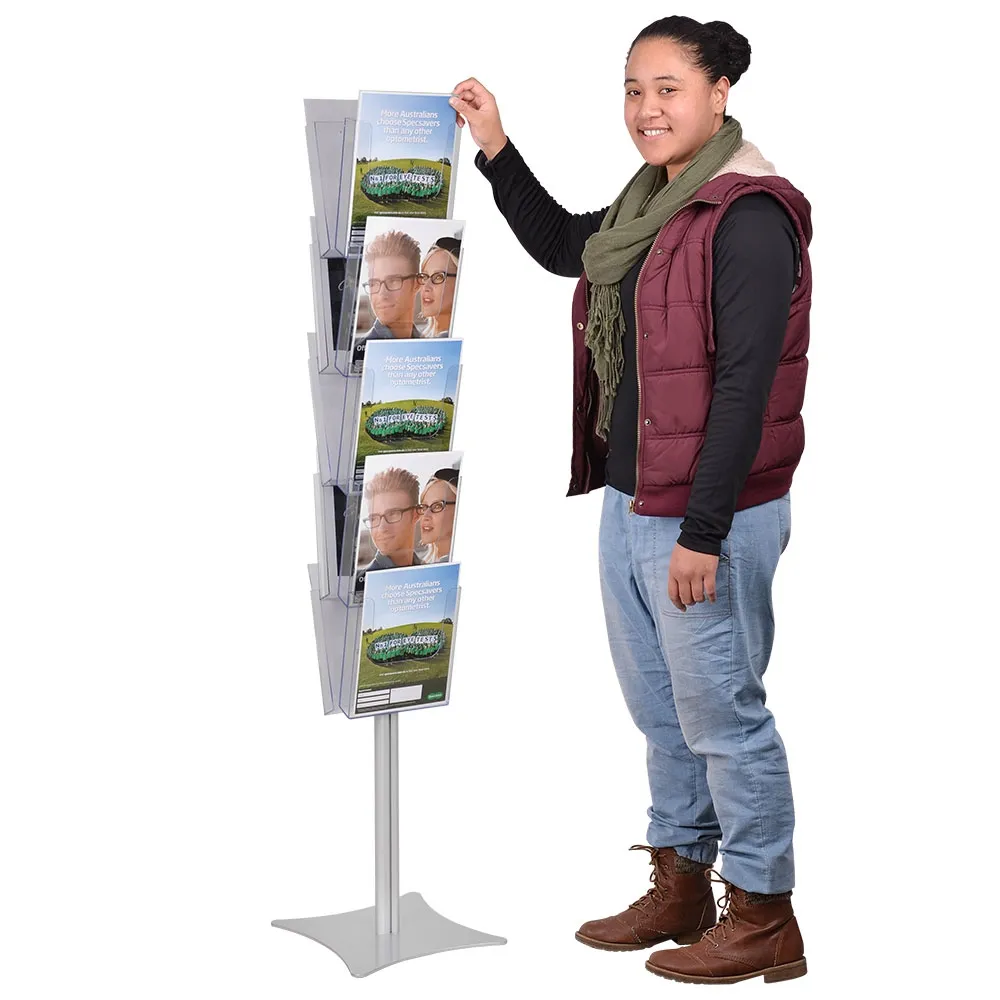- Brochure holder display stand has 10 acrylic pockets for A4 (210 x 297mm) brochures