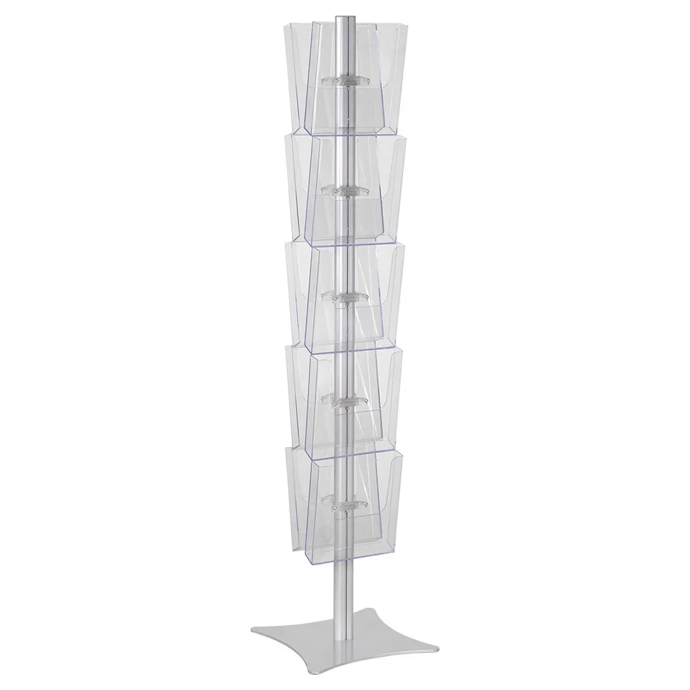 This brochure holder display stand helps you provide literature or magazines to visitors at your business, trade show booth, retail store, or doctor office. The acrylic literature racks have (10) clear acrylic pockets that are slightly angled to help make taking items out easily. The clear view lets patrons know exactly which item is available. This literature display is easy to set-up too, with only simple tools needed!