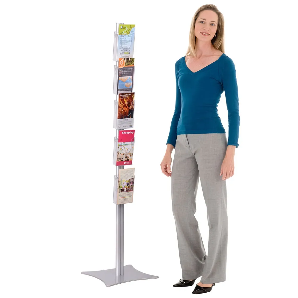 - Brochure holders feature adjustable height pockets to arrange stand how you wish