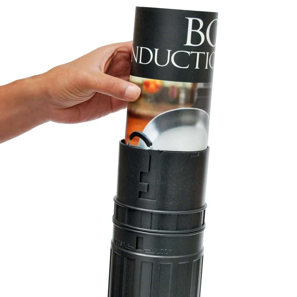 The poster carrying case, poster tube is made from plastic for a durable unit that will last for years to come. The stylish black finish makes bringing your display to and from different events simple. These displays are popular with companies that frequent offices, exhibitions and trade shows.