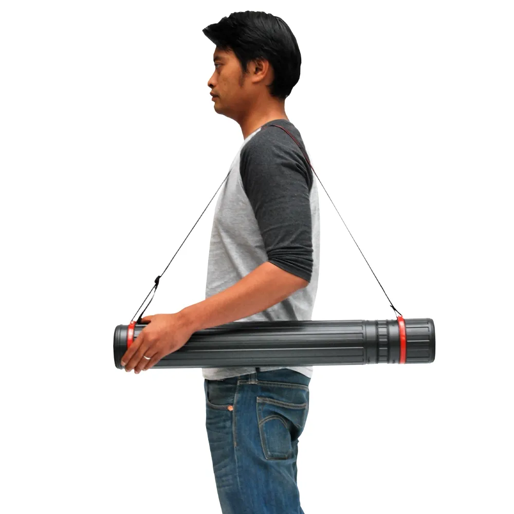 Poster carrier tubes, carrying cases, and other poster tubes have an adjustable shoulder strap that is able to fit anyone for a versatile transportation device. The poster tubes are made from black plastic to create & provide a stylish way for your employees to bring graphics to any location.
