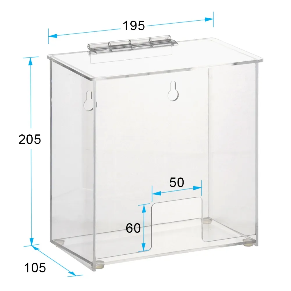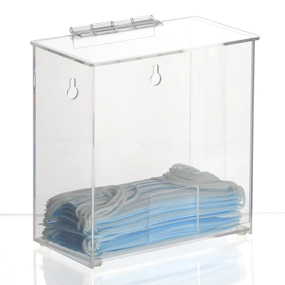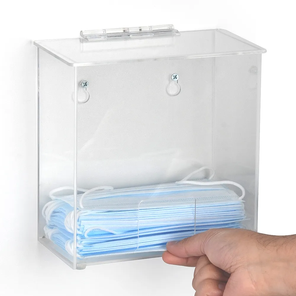 This face mask dispenser is made from clear acrylic, making it easy to see inside to know when PPE is running out and it is time to refill. The 5mm thick perspex has polished edges to provide a durable unit for use in heavily-trafficked areas that has a professional look. The versatile unit can be mounted on wall or placed on table tops depending on the needs of your business. There are rubber feet on the bottom that help to prevent scratches to surfaces the holder is placed on. The back has (2) key hole cut outs that make it easy to hang the display from screws. Slimline Warehouse offers same day Australia-wide shipping with this and most other in stock products if purchased by 3pm EST, buy online today for fast despatch!s