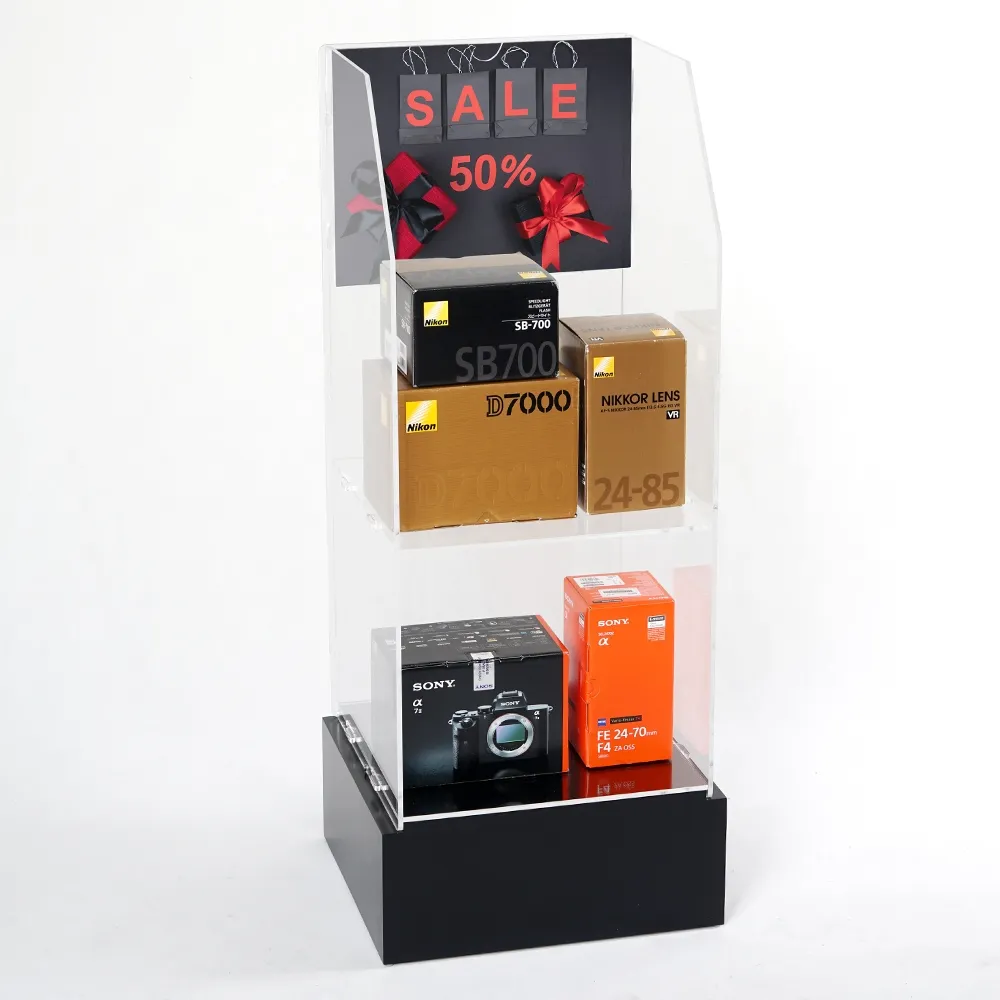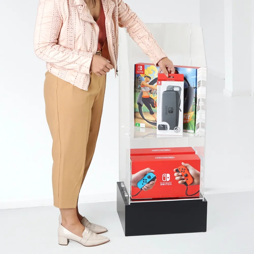 - Clear acrylic build offers full view of what's on display to help draw attention