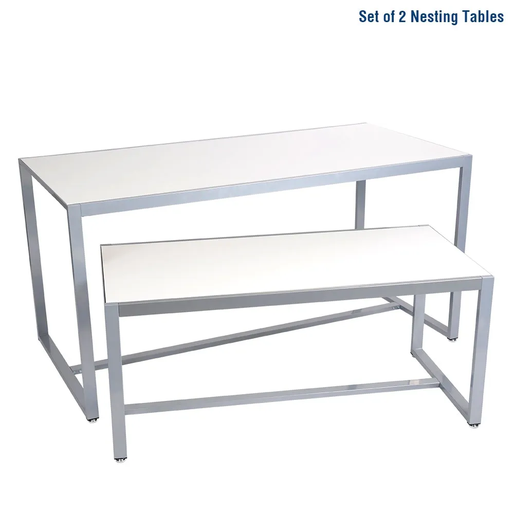 - Nesting table features metal frame with silver powder coat finish for style & durability