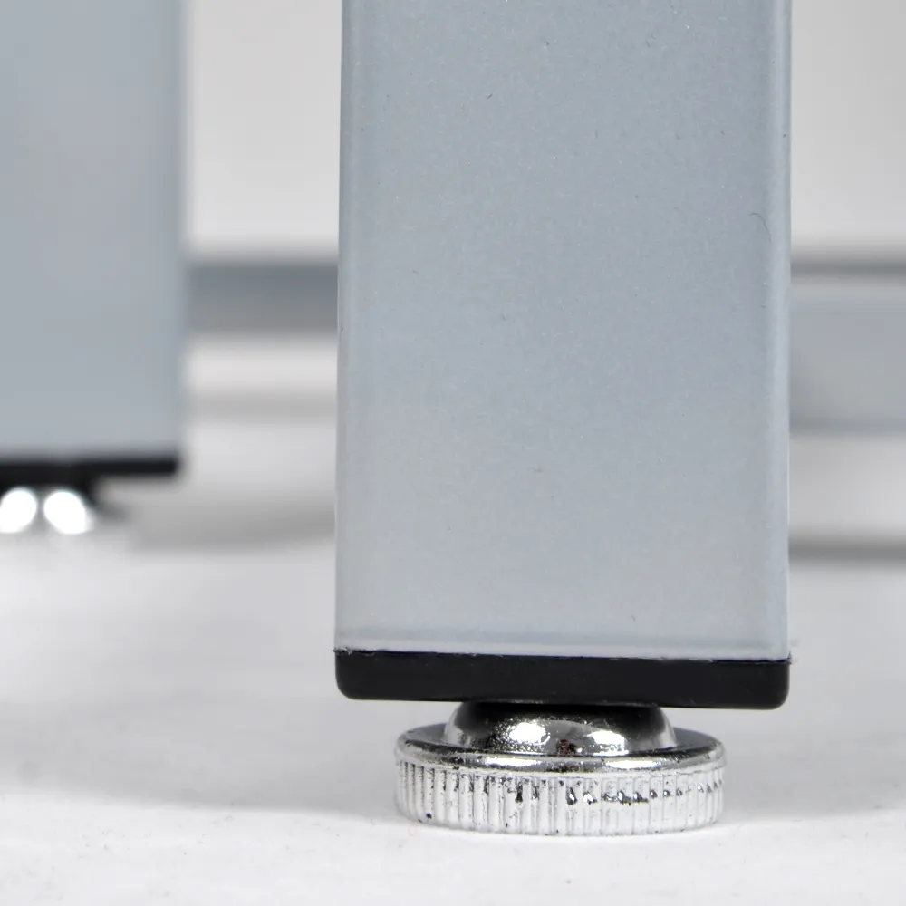 - Base of each table has adjustable feet to level display for stability on uneven surfaces