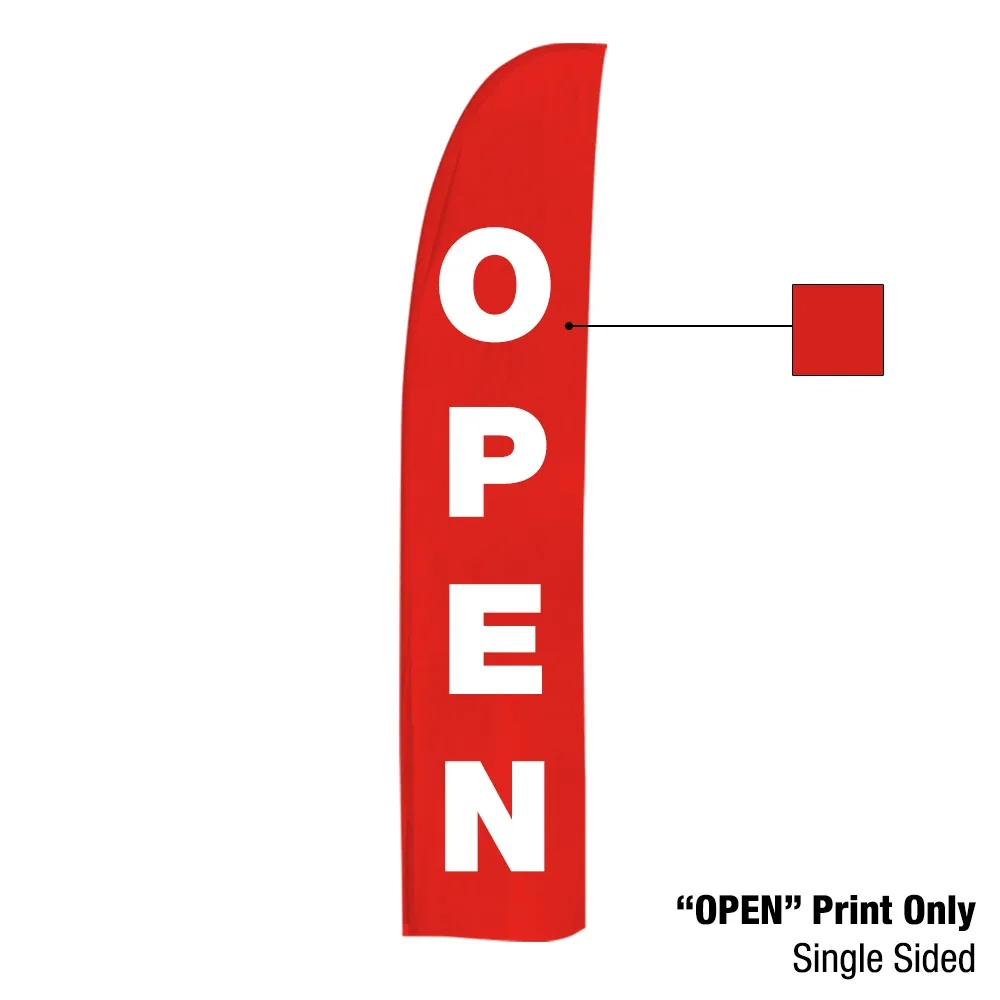 - 3.5m banner is single-sided flag with "OPEN" screen printed in large lettering