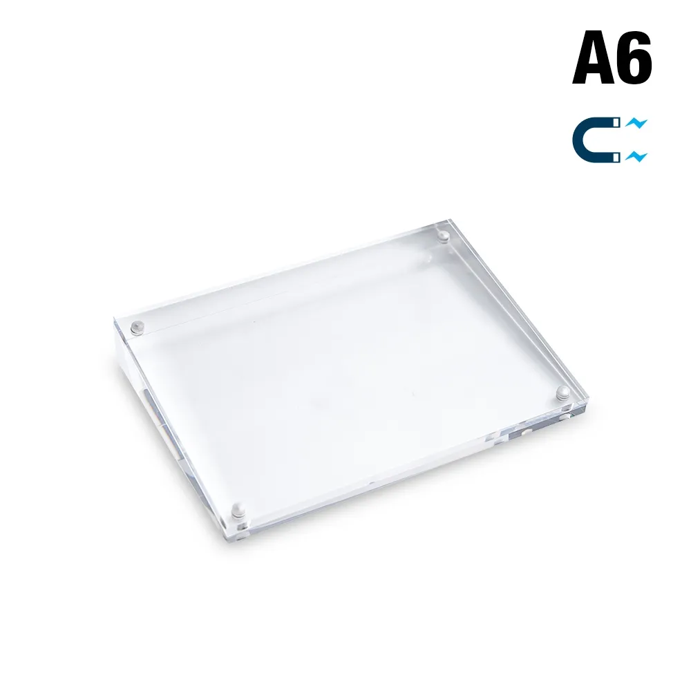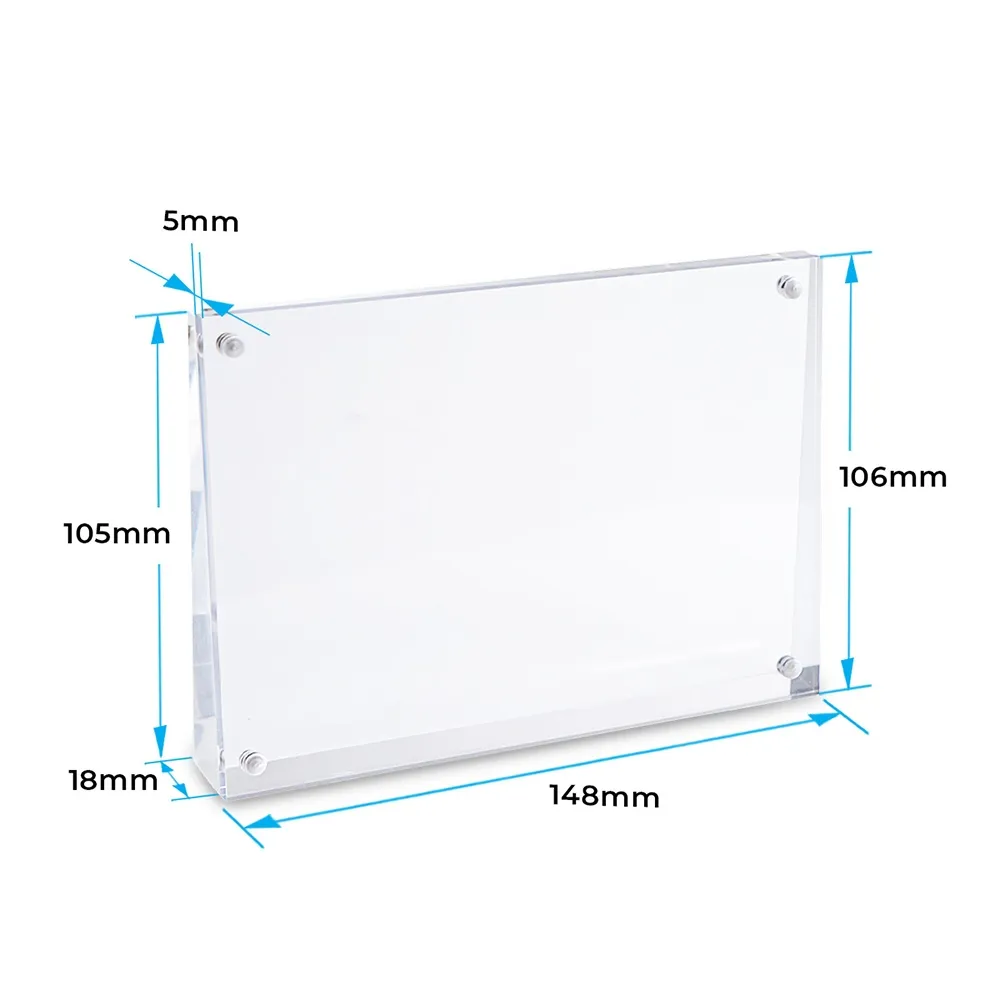 This magnetic acrylic block provides a stylish way to display A6 (105 x 148mm) printed signage on counters, tables, or shelves in a number of locations. The display is designed for portrait or landscape orientation depending on how you need to present your graphics, a versatile holder that can quickly be switched between formats. The compact size makes it ideal for reception areas, retail stores, cafes, or exhibitions where limited space requires efficient and tidy displays.