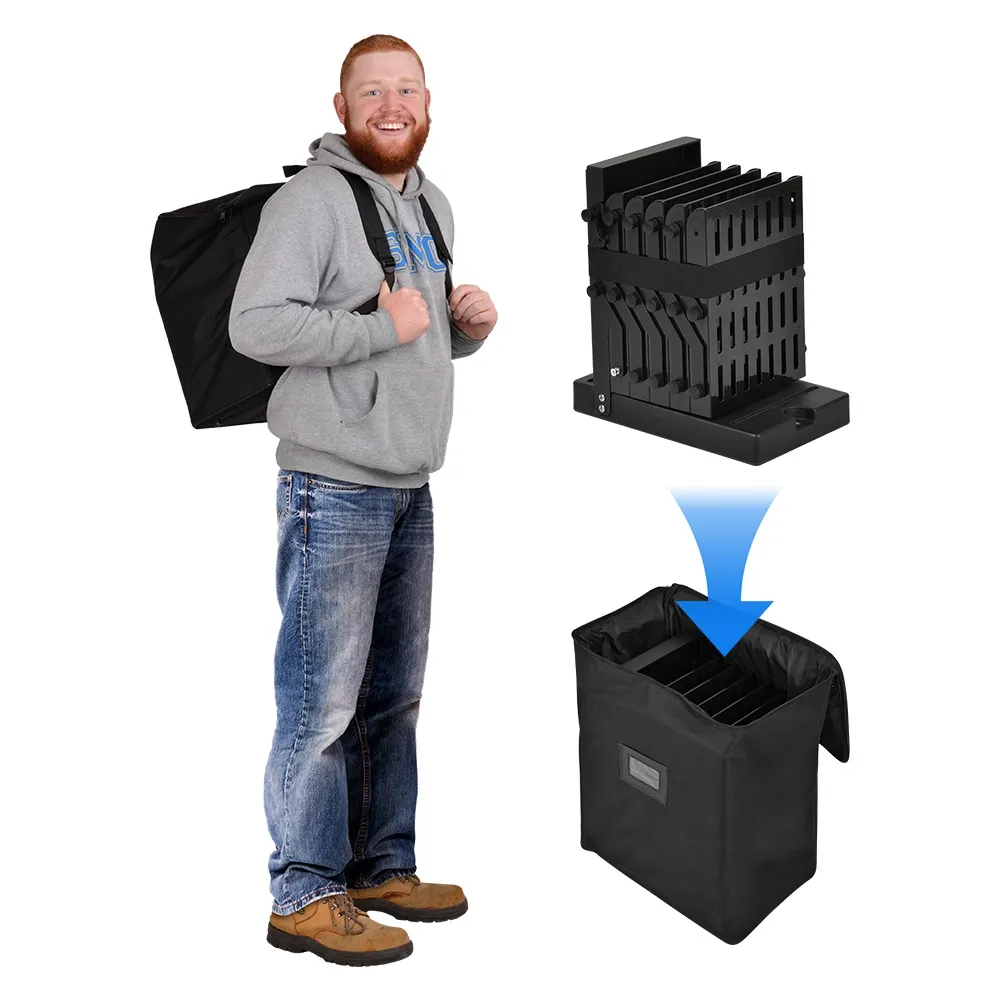 Included with this indoor / outdoor collapsible brochure stand is a carry bag with a handle or straps that allow the user to carry it on their back like a backpack. Once the literature dispenser is packed inside, the bag has a total weight of just 5kg, so is easy to carry to your display venue.