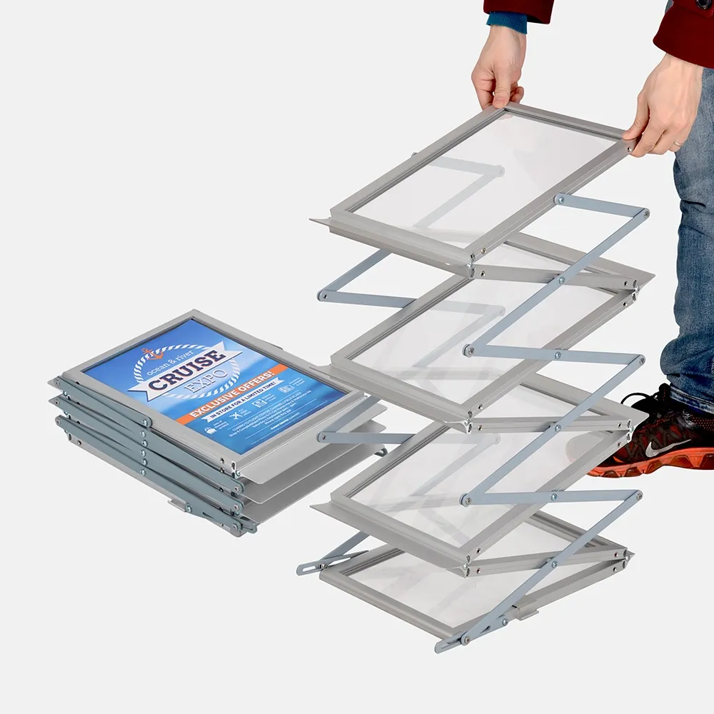 This Portable Brochure Holder is great for mobile salesmen and exhibitions. It literally is expanded or collapsed in just seconds and without the need to remove your brochures from the display shelves.