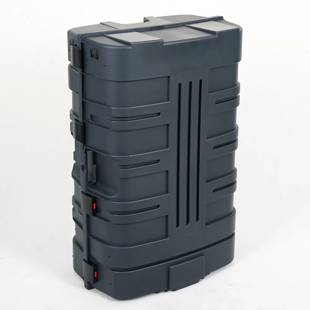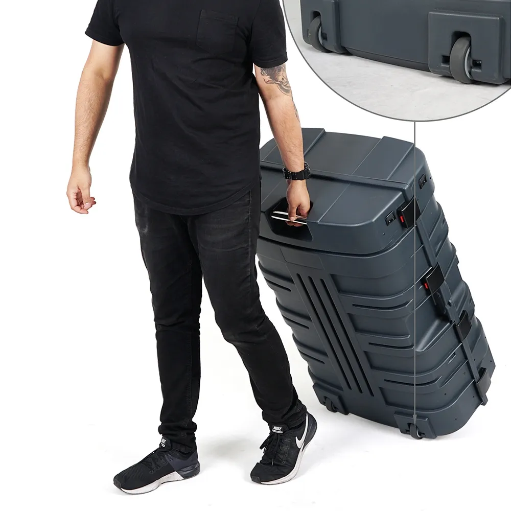 - Hard ABS plastic build offers durable display with built-in handles & wheels for simple transport