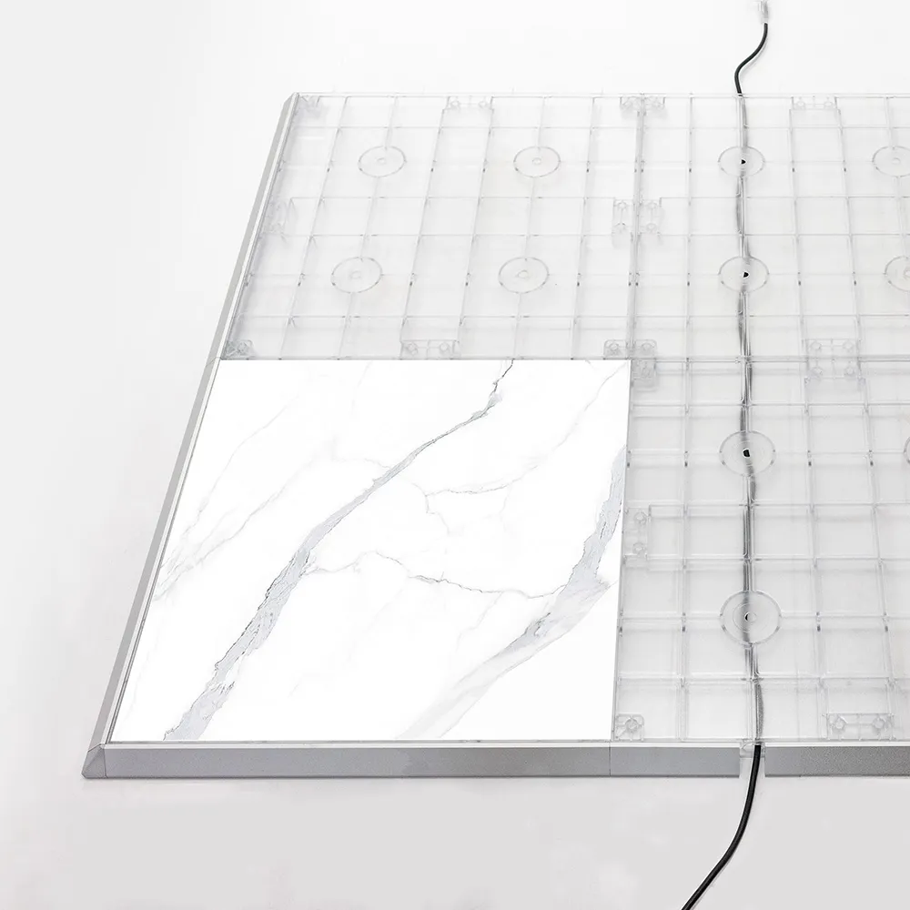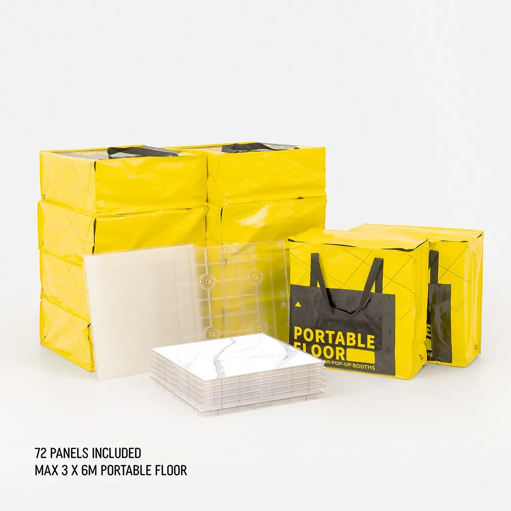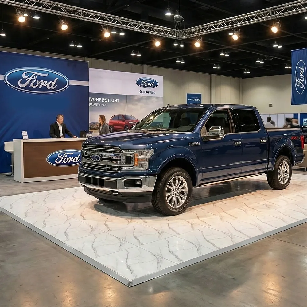 Exhibitors, event organisers and retail teams rely on this elevated exhibition flooring system to reduce trip hazards, meet WHS expectations and improve visual presence. Aluminium ramp edges support safer access, including wheelchair-friendly entry points, while cable channels keep AV and digital displays organised. The exhibition booth platform floor supports heavy equipment and fast bump-in schedules.