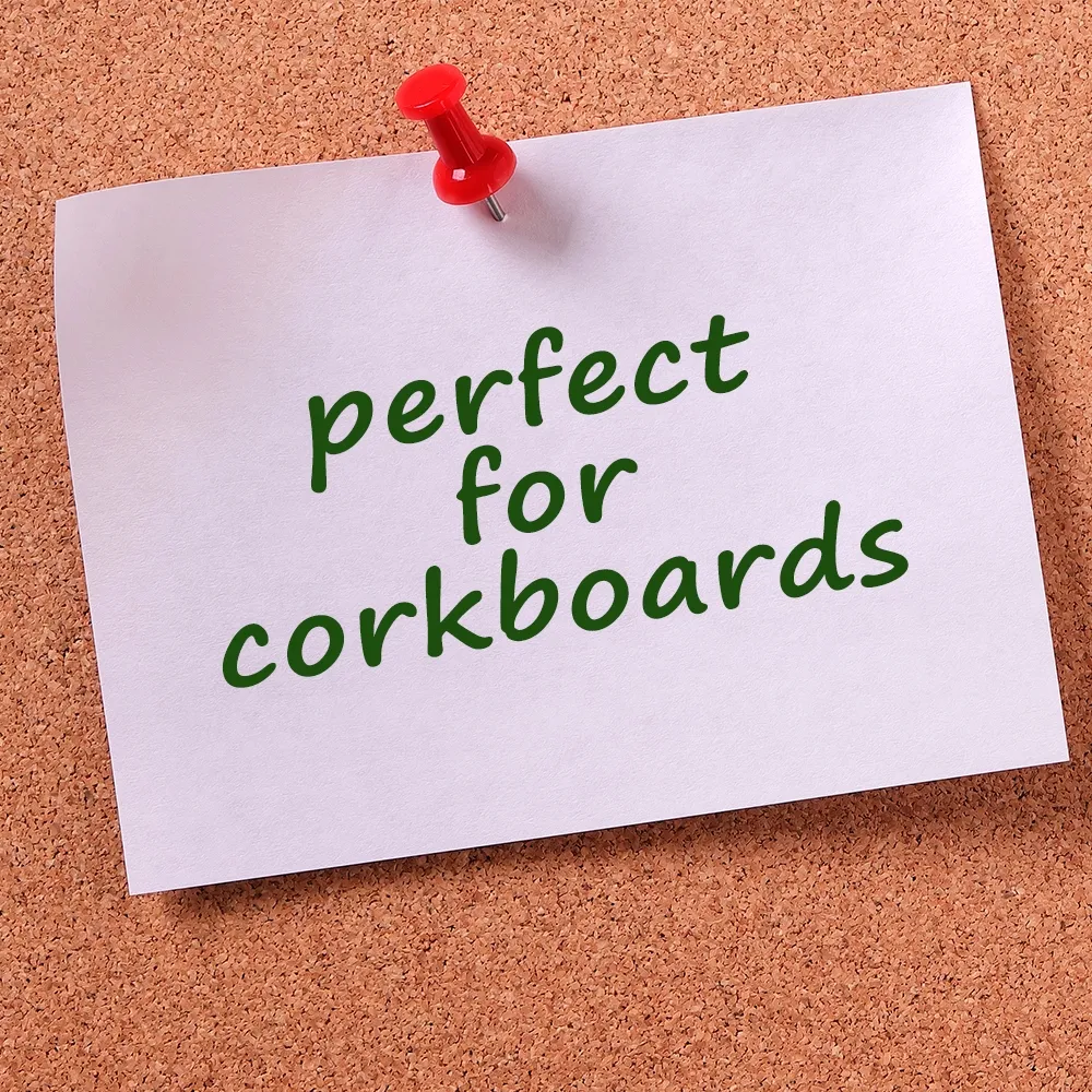 These push pins are the best way to hang signs and posters on a cork board. While stapling graphics to the corkboard is also a possibility, push pins are easily removed without tearing a poster while staples are more of a hassle. The thumb tacks are used in retail stores, schools, offices, restaurants, bars, information centres, exhibition halls, and many more venues.