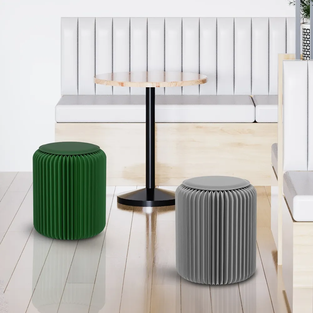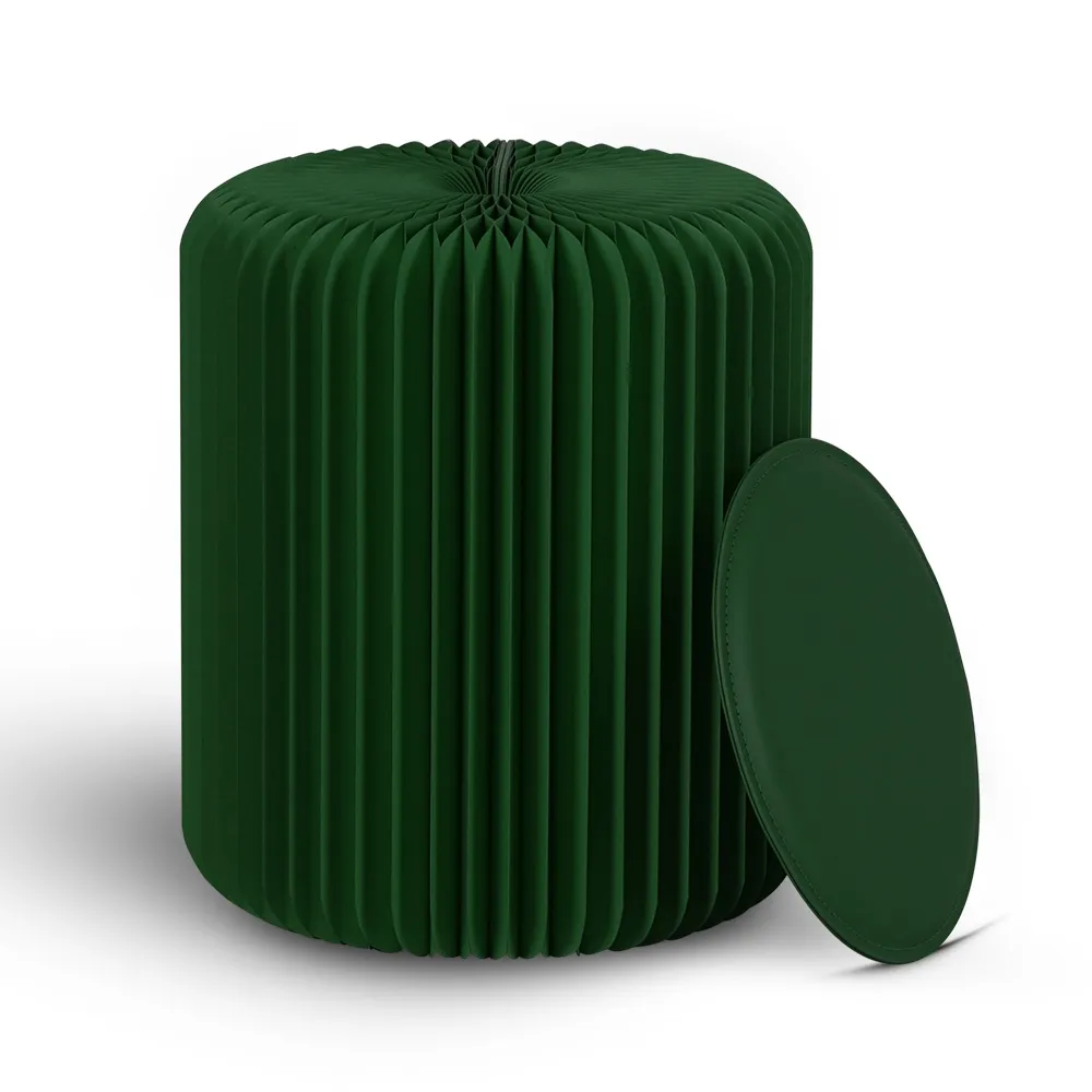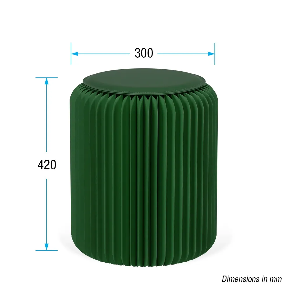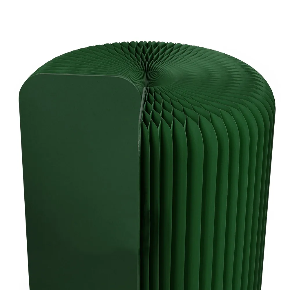 This honeycomb stool is a sustainable and versatile seating option, crafted from recyclable cardboard to provide an eco-friendly solution for businesses and events on any budget The patented honeycomb structure combines lightweight design with durability, with the seat able to support up to 300kg without issue. Assembly is quick and tool-free, as the side panels have magnetic edges that securely connect the sides in seconds. This accordion seat has a dark green colour to add a contemporary touch to retail stores, cafes, libraries, waiting rooms, parties, exhibition booths, weddings, and other venues.