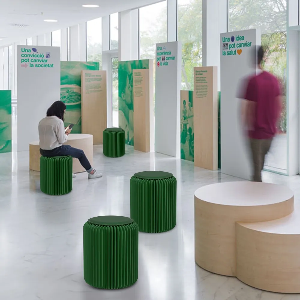 - Honeycomb stool crafted with recyclable green cardboard for an eco-friendly choice