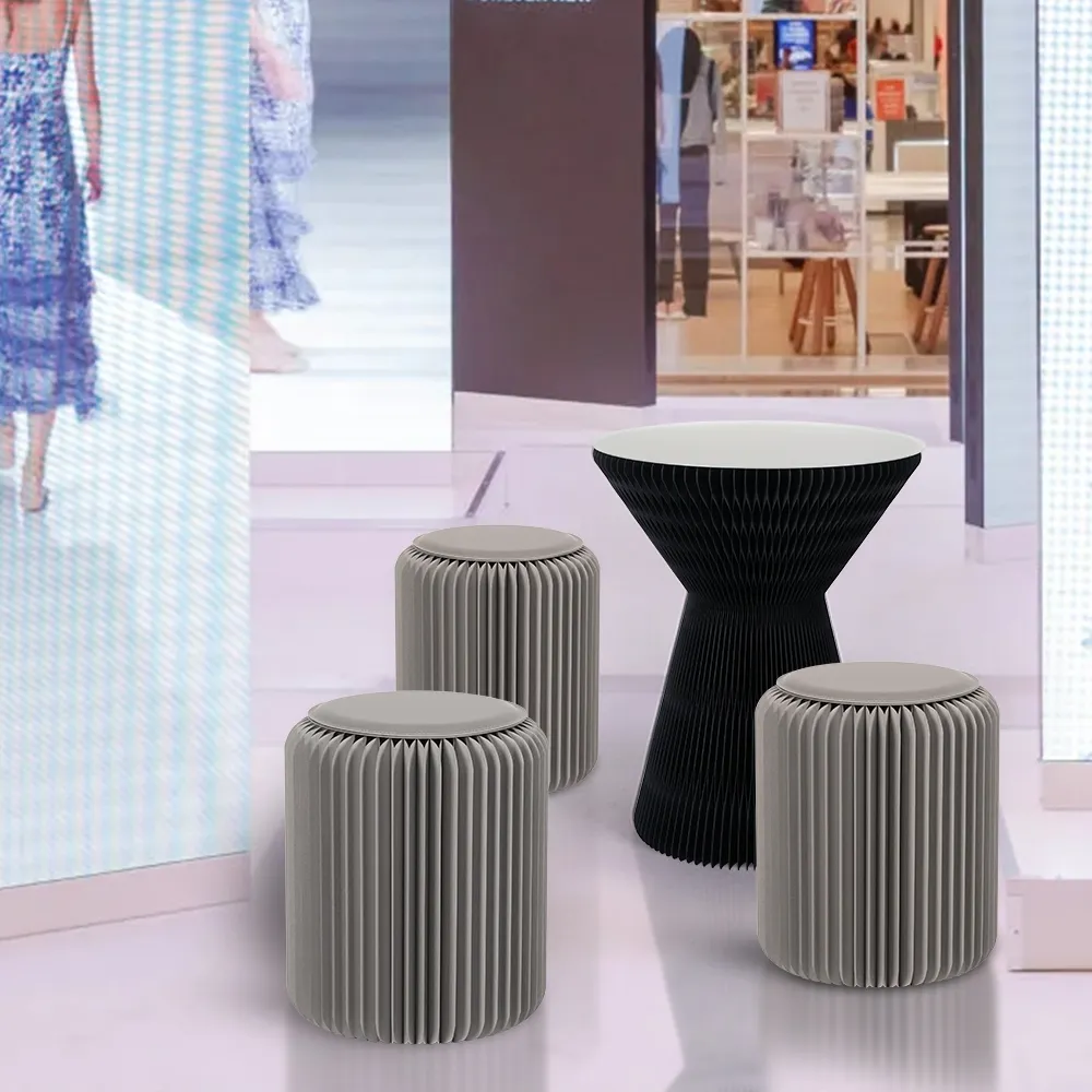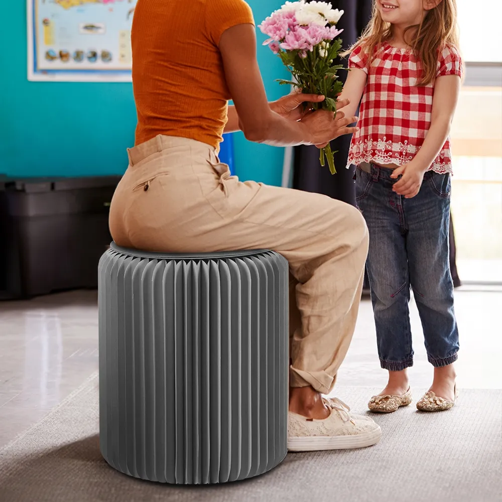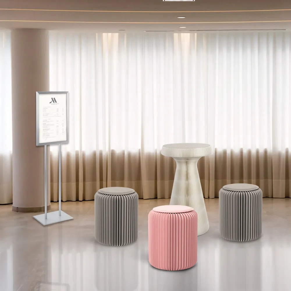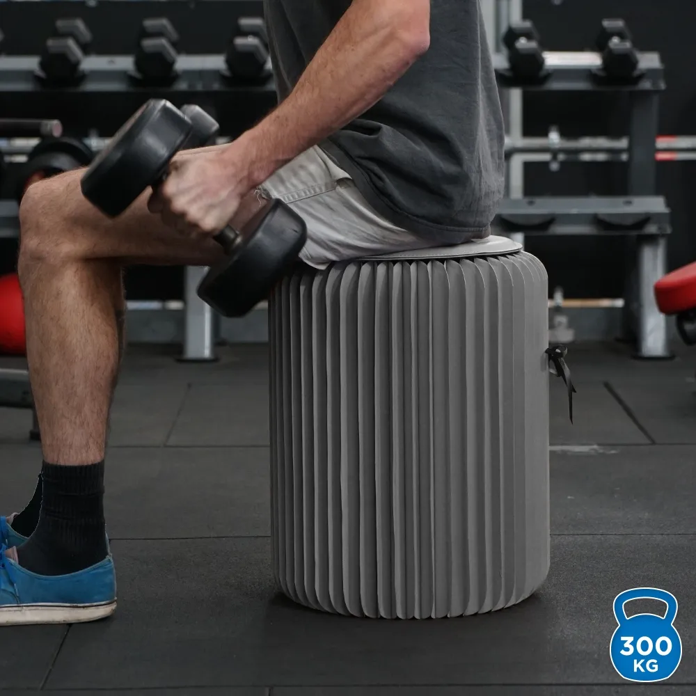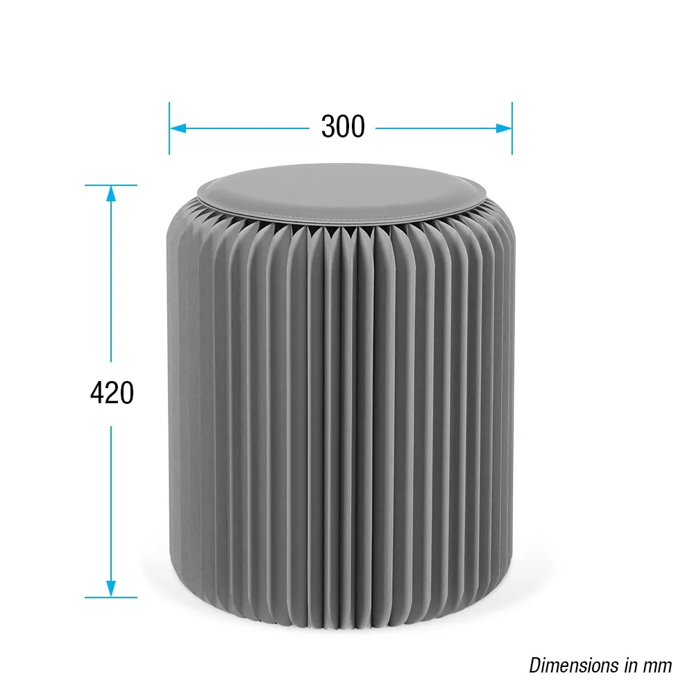 This concertina stool has an eco-friendly design, crafted from recyclable cardboard to provide a sustainable seating option that can be safely disposed of at the end of it's useful life. The quick assembly design uses magnetic edges for seamless assembly, requiring no tools and taking only seconds to set up. A patented honeycomb design ensures exceptional durability and stability that is capable of supporting up to 300kg to be suitable for visitors in any setting. The modern grey colour adds a sleek, neutral tone that complements décor anywhere, including cafes, libraries, retail stores, waiting rooms, shopping centres, exhibition booths, office lobbies, yoga studios, parties, weddings, and more.