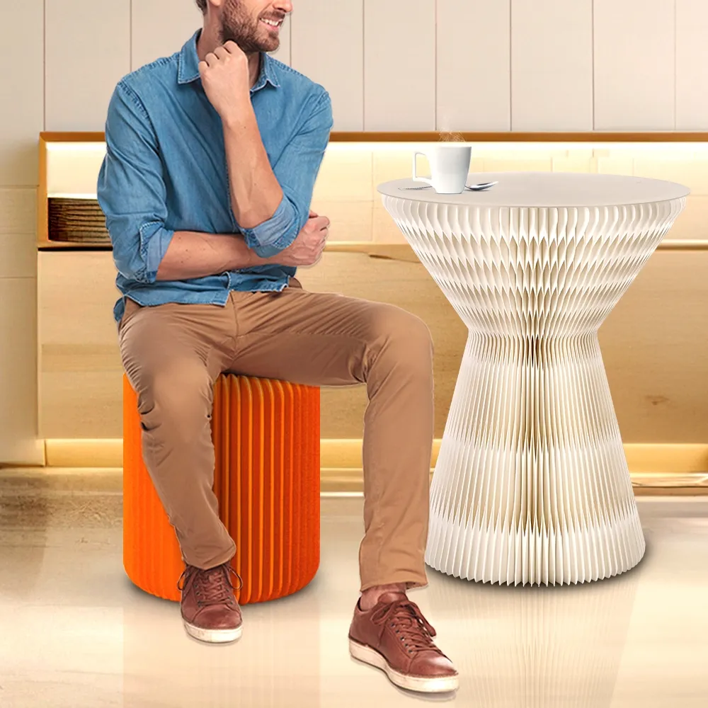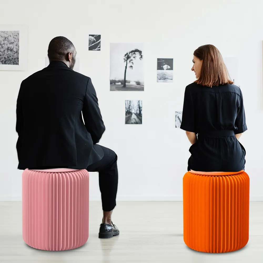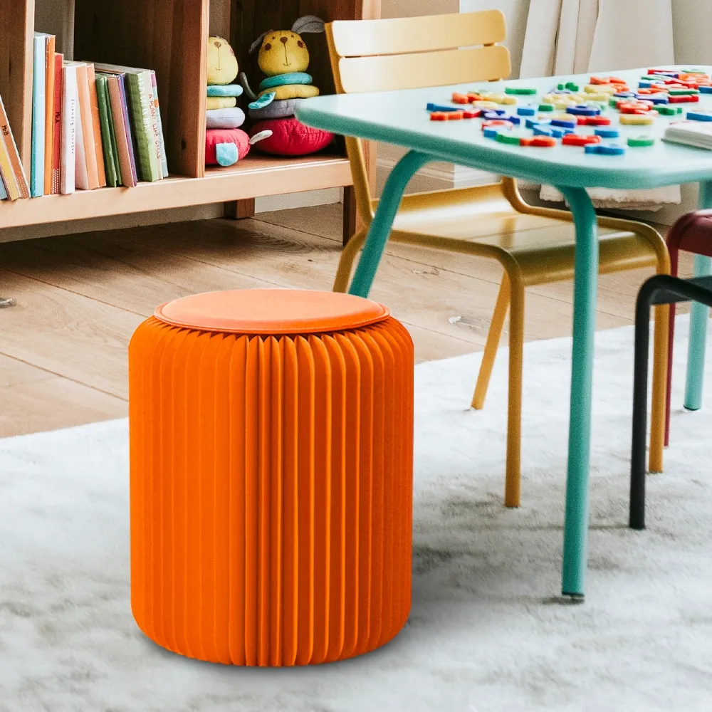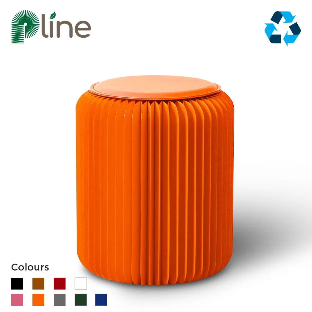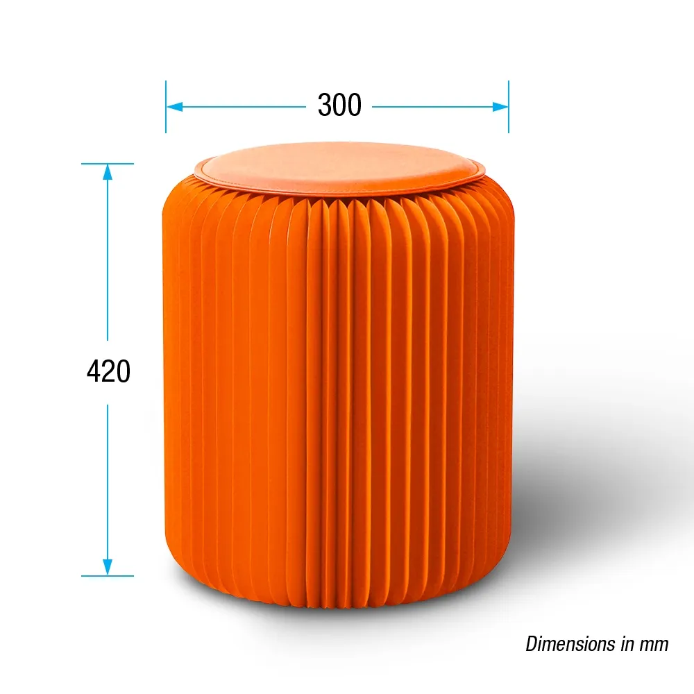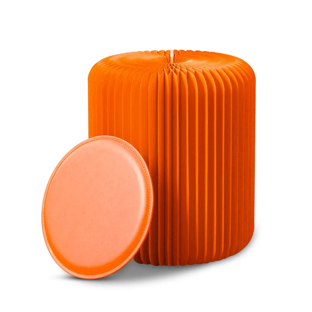 - Paper folding stool crafted from recyclable orange cardboard for eco-friendly seating