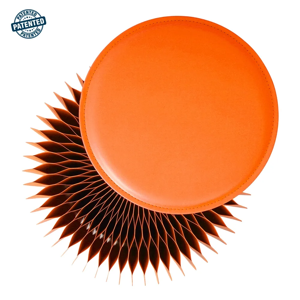 This paper folding stool offers a modern design in a vibrant orange colour, adding a pop of style to any setting. The expandable design uses magnetic edges for seamless assembly, requiring no tools and taking only seconds to set up by allowing the two edges to press together. Made from recyclable cardboard, this eco-friendly stool provides an affordable seating solution that’s also biodegradable for safe disposal after use. The patented honeycomb structure offers exceptional strength, supporting up to 300kg to easily support visitors in any space or event. This style of seating is popularly used in retail stores, shopping centres, cafes, libraries, exhibition booths, parties, museums, waiting rooms, weddings, and more.