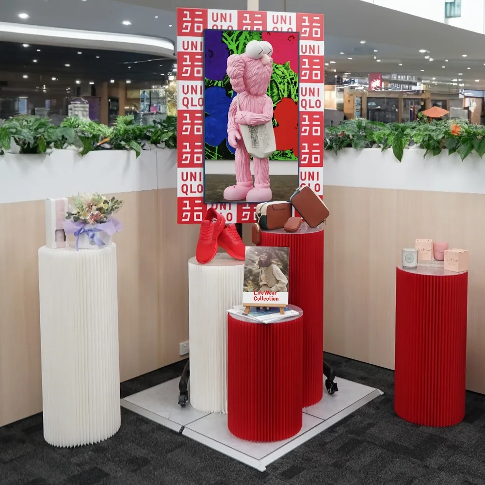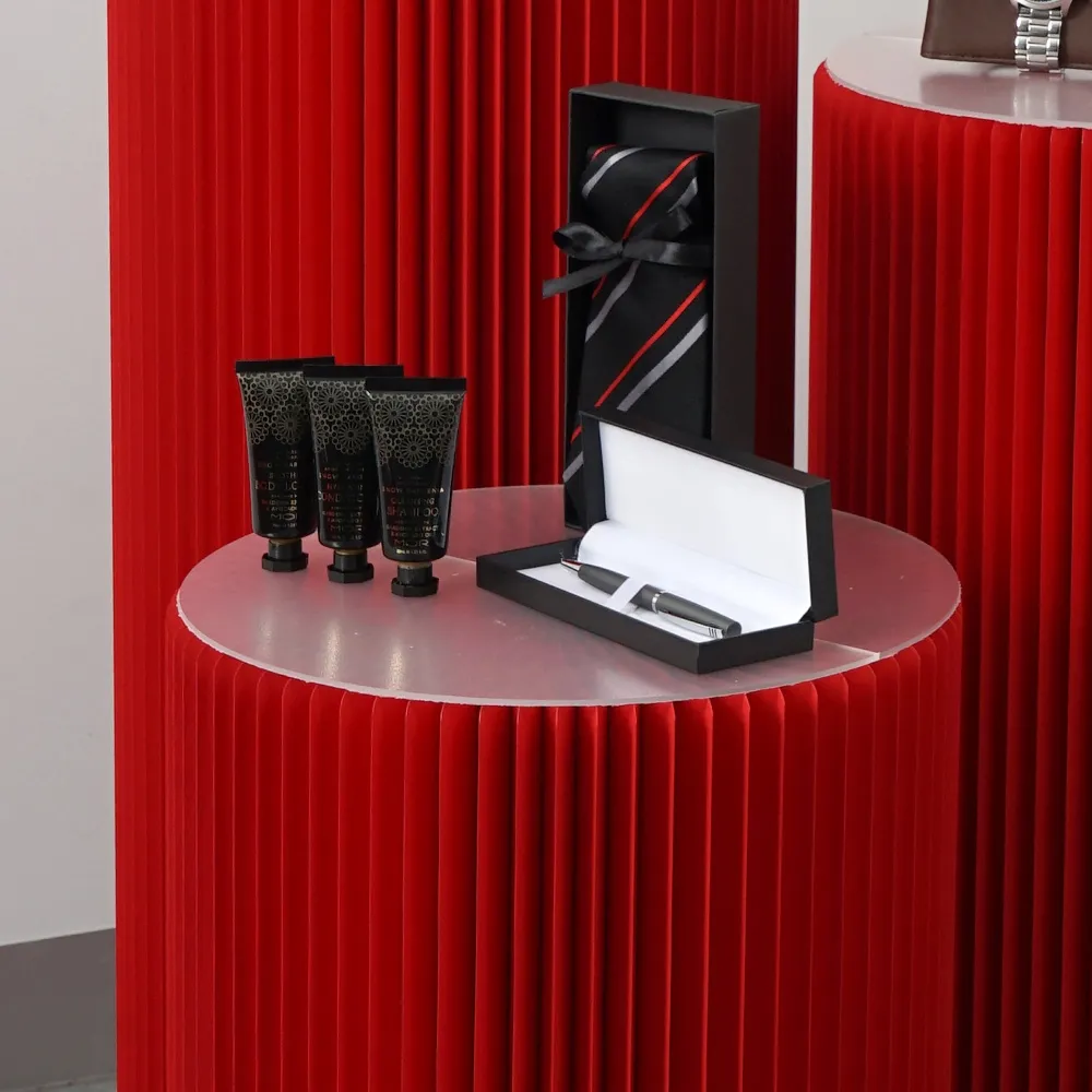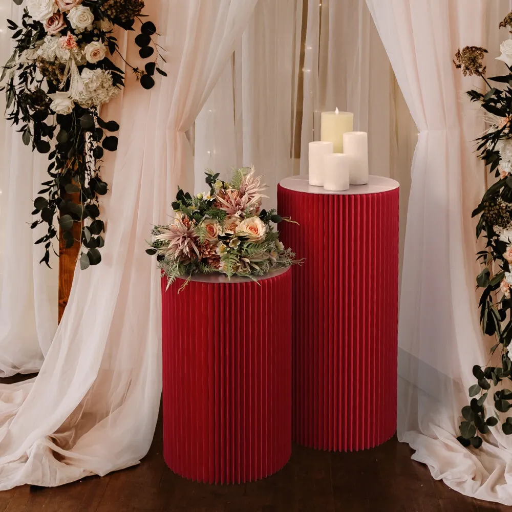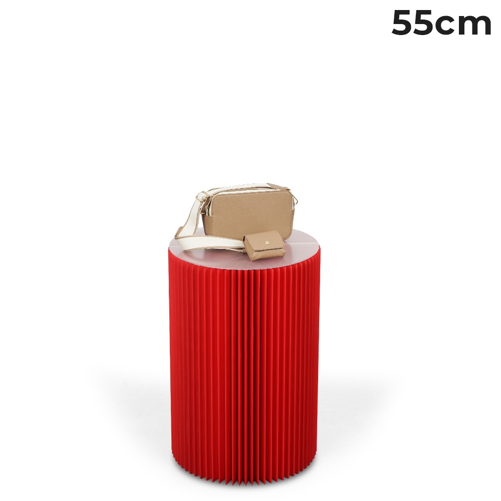 - Pedestal cylinder is made of red recyclable cardboard to be environmentally friendly