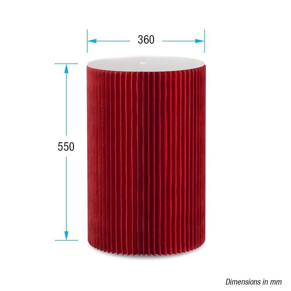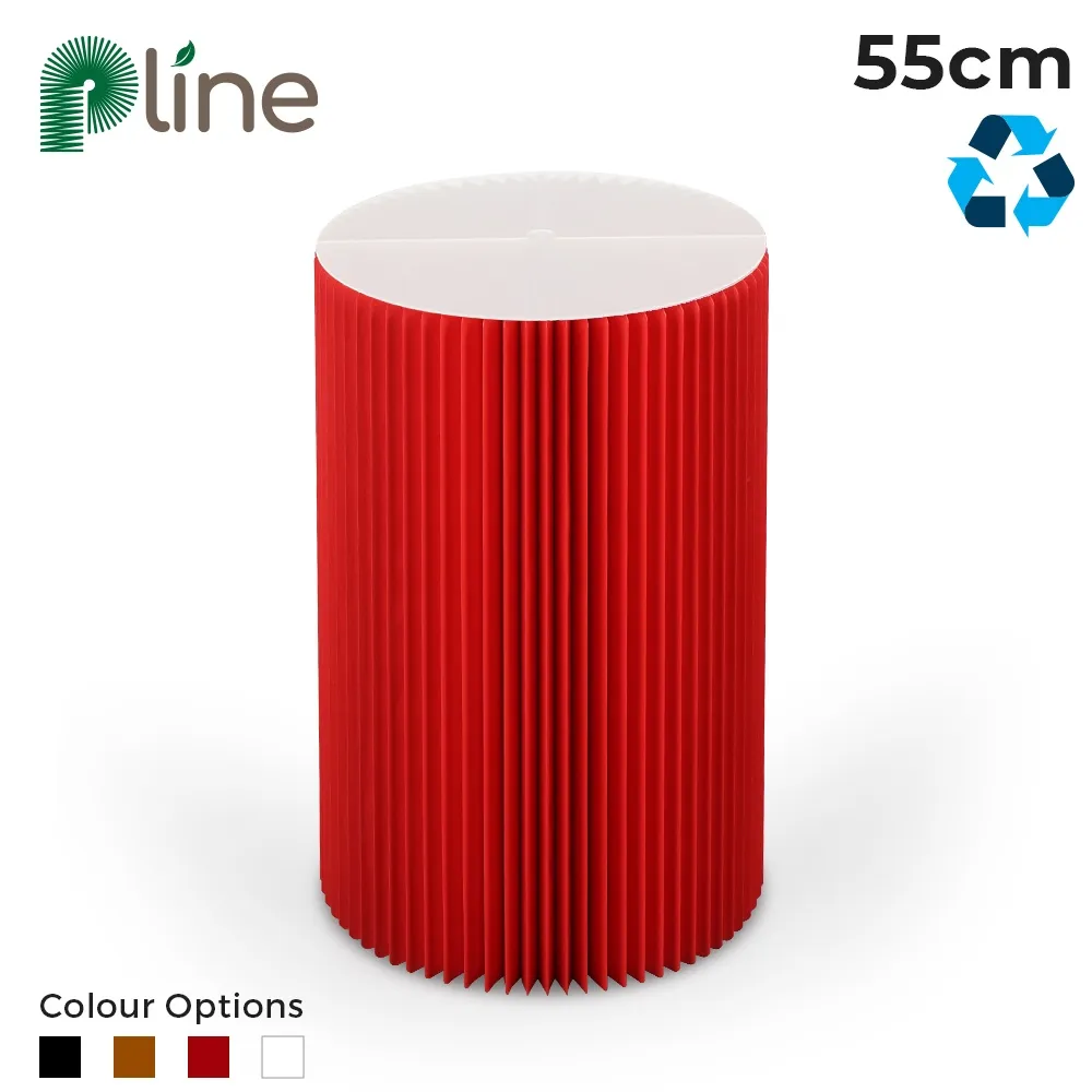 This pedestal cylinder is a portable display that can be used in a number of locations, including universities, retail stores, exhibition booths, cafes, and even weddings! The 55cm tall plinth has a 365mm diameter, allowing a variety of items to be placed atop easily. Though the pedestal weighs only 2.55kg, it can support up to 50kg thanks to a patented honeycomb design. This display is made from recyclable cardboard to be environmentally friendly and affordable without compromising on style. The red finish and fluted column offer a contemporary design to bring a sleek aesthetic to any location.