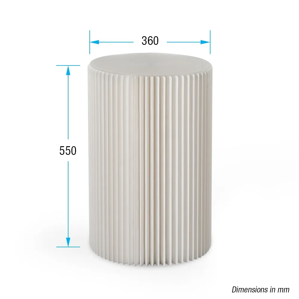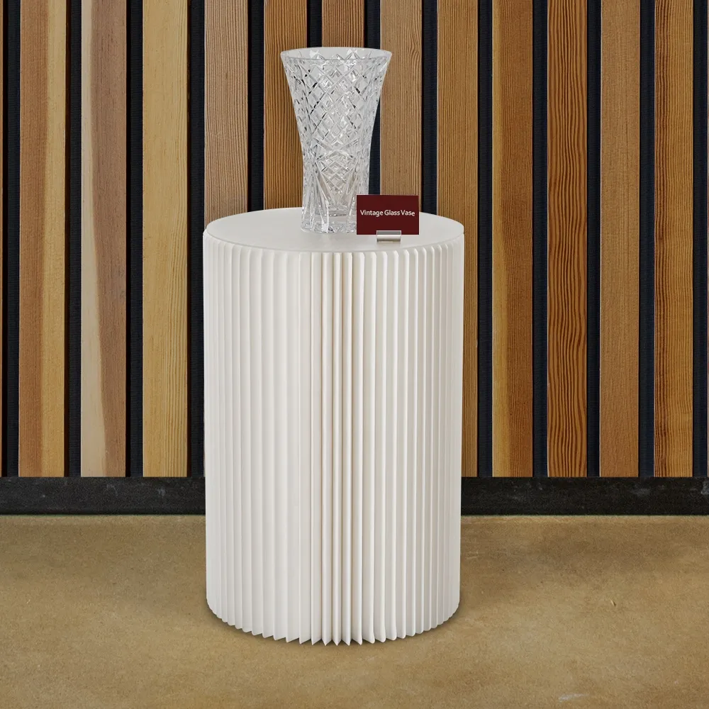 This expandable plinth is great for elevating items in any location to help draw attention! The pedestal is made from recyclable cardboard that is biodegradable for an environmentally friendly display that is affordable with a modern fluted design. The bright white pillar is 1150mm tall with a 365mm diameter that stands out in different area without taking up too much space to allow other displays to be placed and provide ample space for walking. The patented honeycomb design has a strong interior structure whilst maintaining a lightweight fixture. This style of build allows up to 50kg to be placed atop the display to easily hold a wide variety of items without issue.