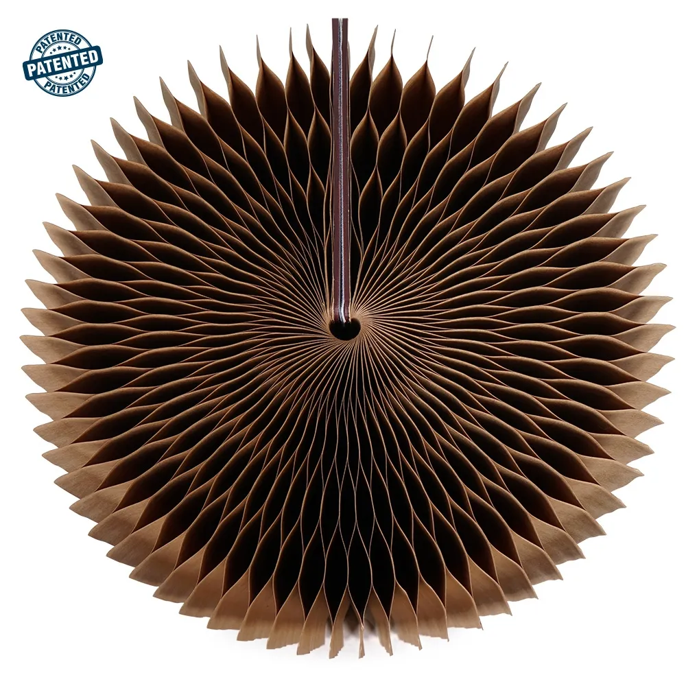 Paper plinths are a great fixture for exhibition booths, retail stores, weddings, fine dining restaurants, shopping centres, and more to utilise to elevate items and draw attention. The pedestal is made from recyclable cardboard in rustic brown, providing a biodegradable and environmentally friendly display at an affordable price without compromising on style. The fluted look of the pillar is a contemporary design that is at home in any location. A patented honeycomb interior structure helps keep the display lightweight whilst still allowing up to 50kg in total weight to be placed atop the pedestal to easily accommodate a wide range of items.