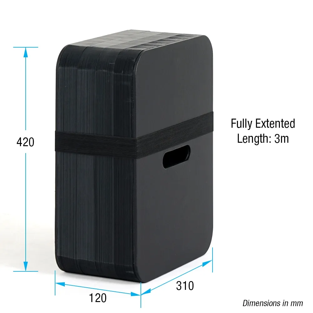 - Accordion design folds to only 420 x 120 x 310mm for easy storage and carrying using included elastic band