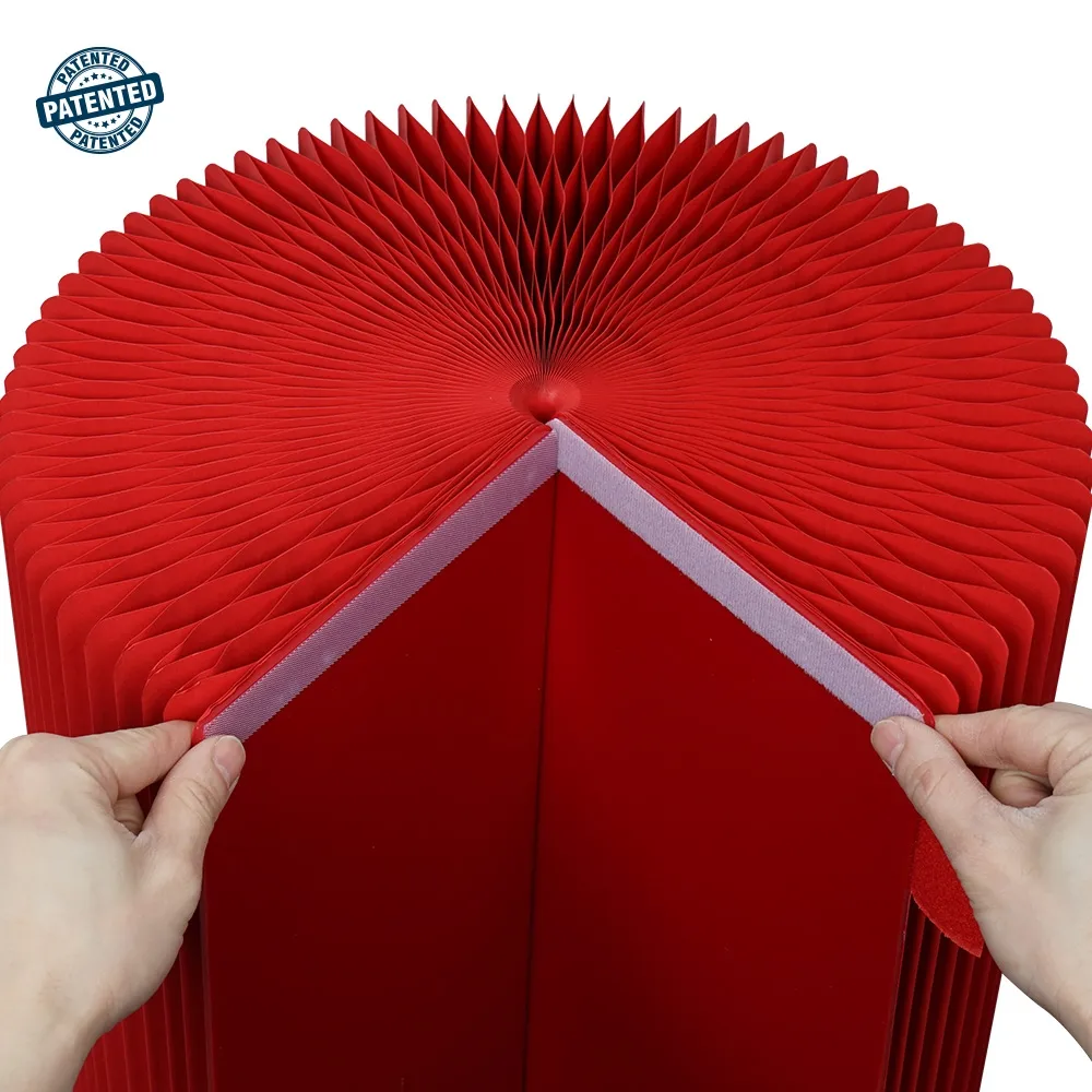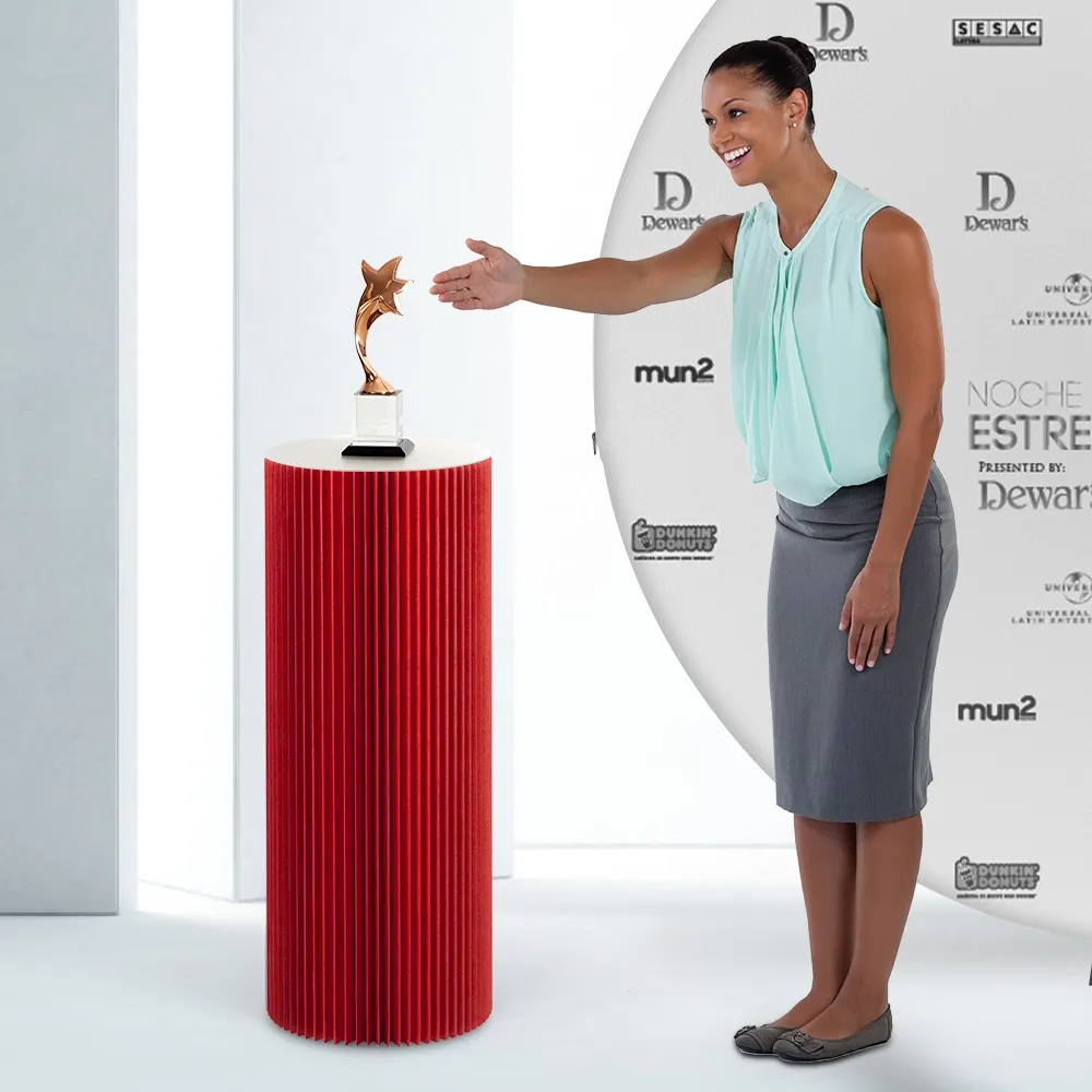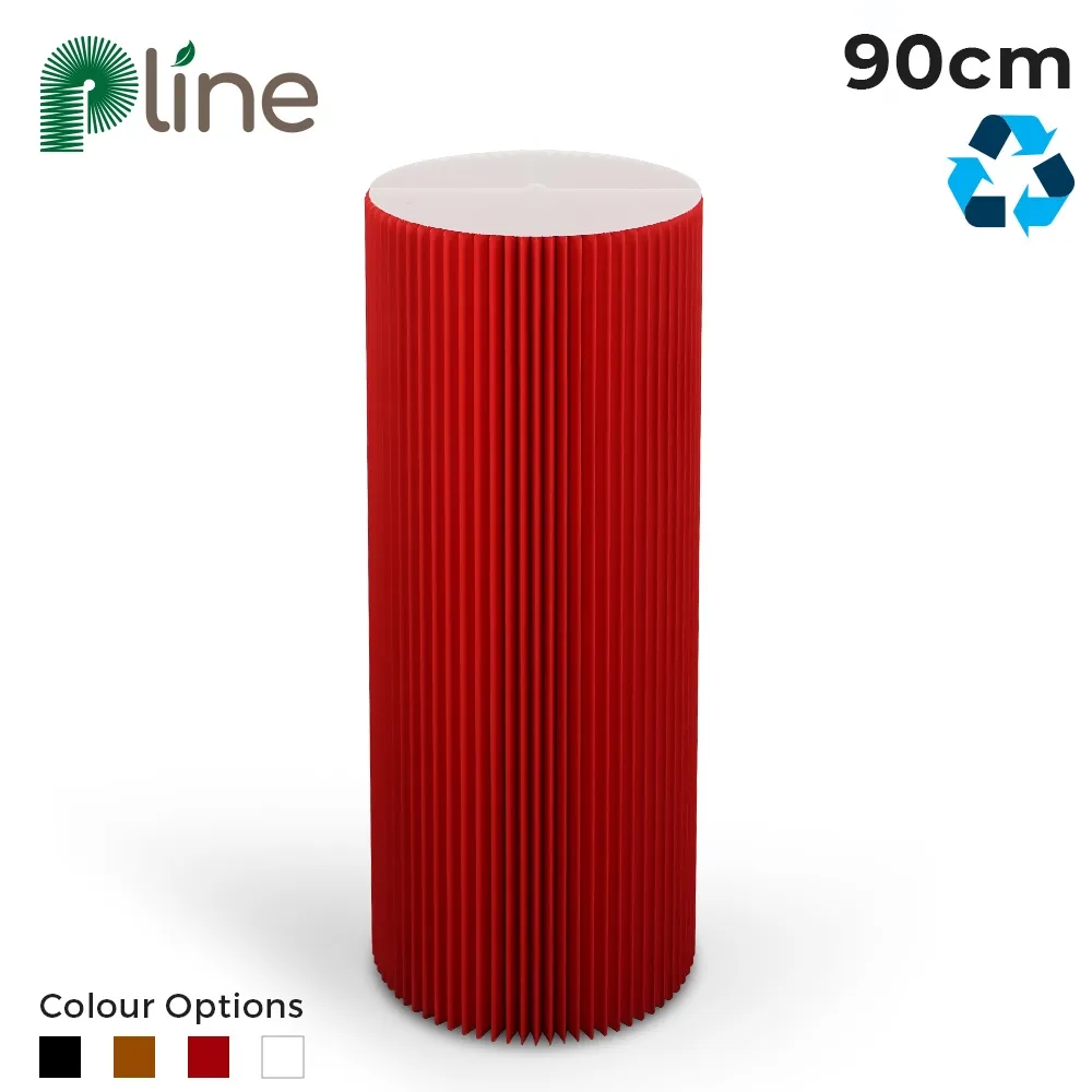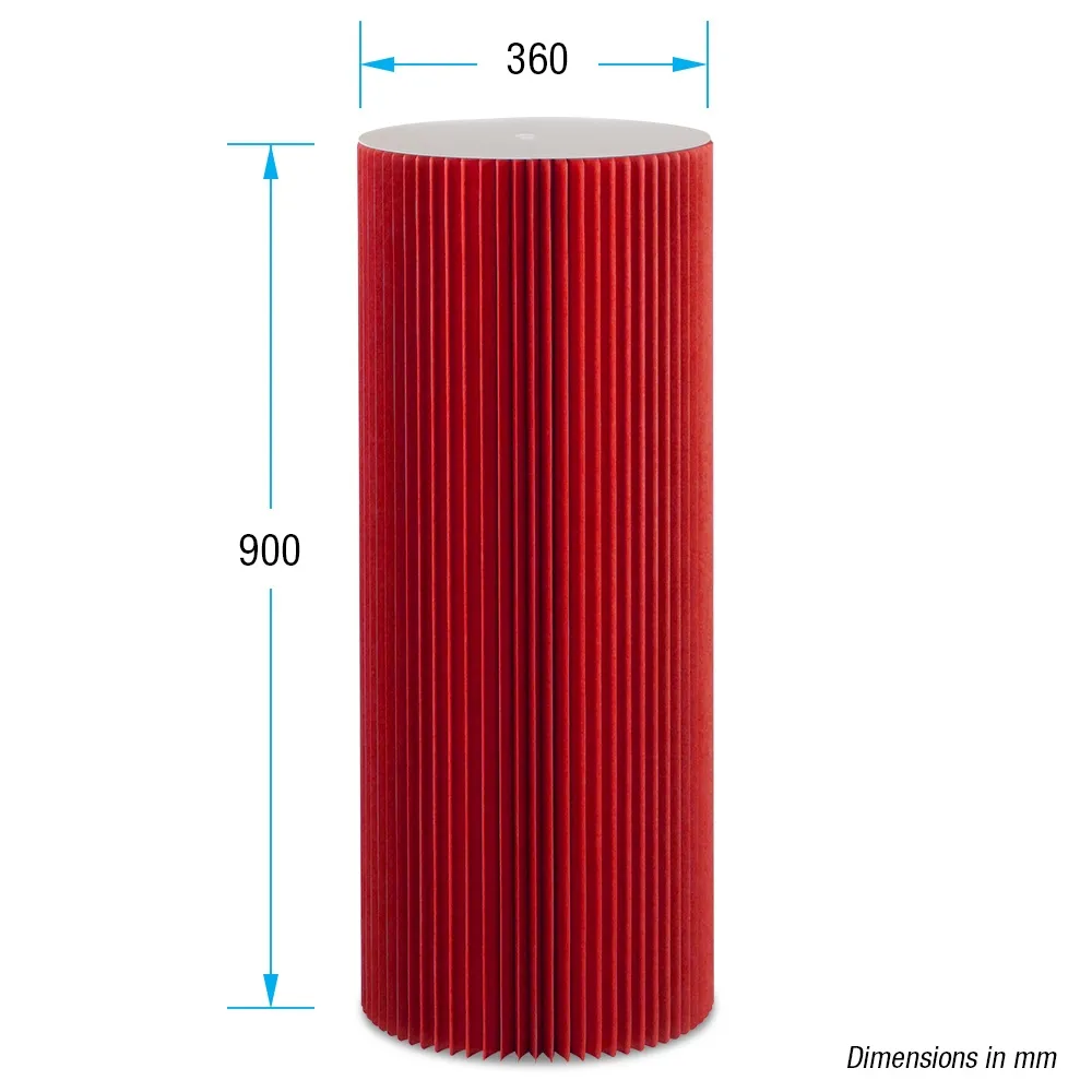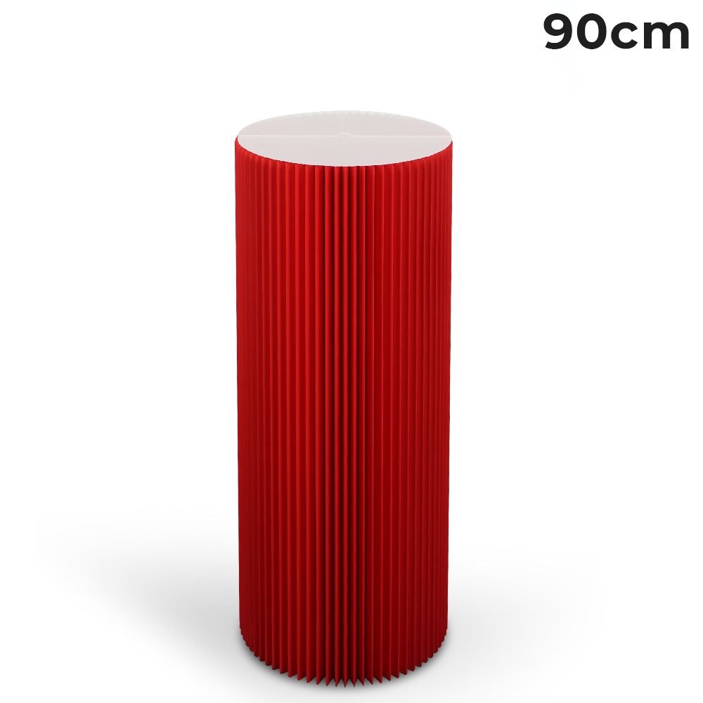 Use a red plinth to beautifully display items at your location atop a 90cm tall pedestal whilst remaining environmentally conscious! This unit is made from recyclable cardboard that combines affordability with a modern look that works well in retail stores, wedding venues, cafes, restaurants, universities, exhibition booths, and more. The pedestal has a 365mm diameter to hold a variety of items whilst taking up less floor space. The quick setup unit requires no tools for full assembly, with Velcro strips keeping the edge panels tightly together.