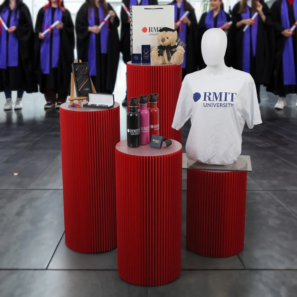 - Red plinth made from recyclable cardboard & is 90cm tall