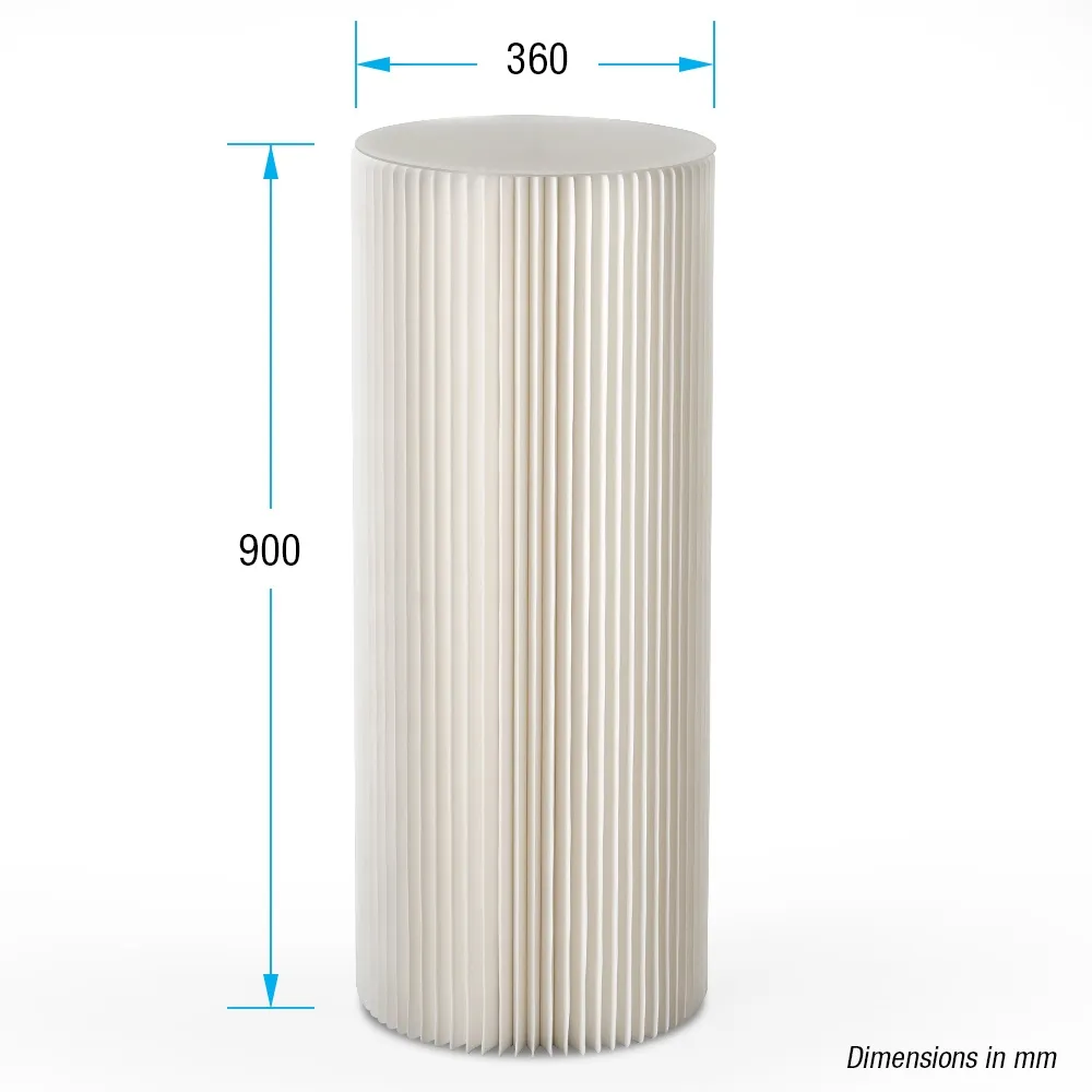 - White cylinder plinth has patented interior honeycomb structure to support up to 50kg