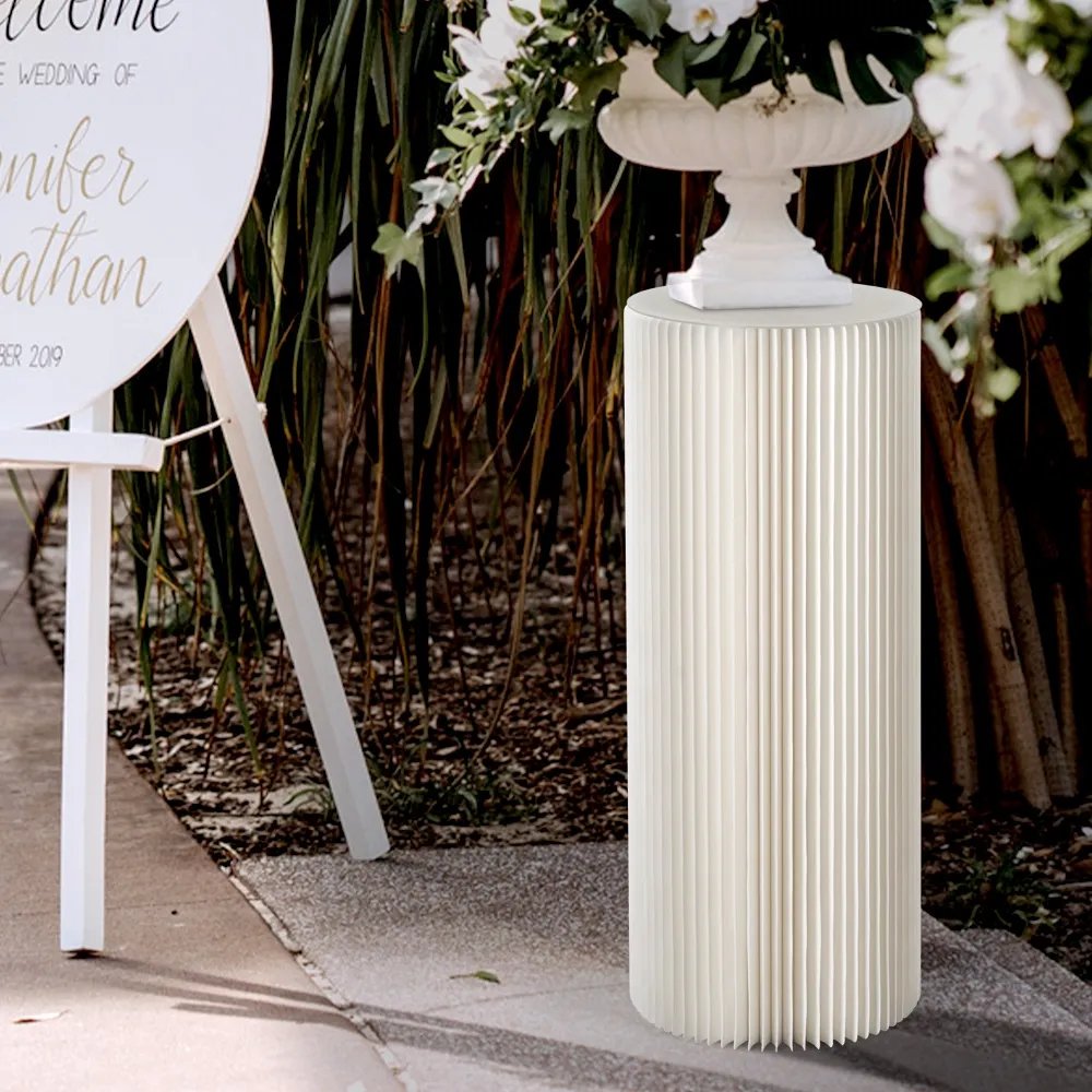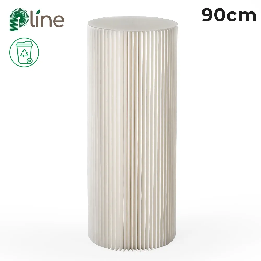 This white cylinder plinth is sure to help draw attention at any location, whether used at weddings, birthday parties, trade show booths, retail stores, fine dining restaurants, cafes, or popup events. The 900mm tall pedestal is perfect for displaying hero products or important items for guests to see, with a 365mm diameter top and bottom offering heaps of space for items whilst minimising floor space. The fixture is made from recyclable cardboard that is environmentally friendly and biodegradable to provide peace of mind with purchase at an affordable price. The white colour fits in well with different décor styles and has a modern fluted look around the outside that fits in well in any location.