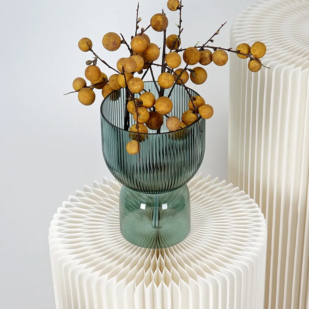 - Environmentally friendly pedestal is made of recyclable cardboard with a modern fluted look