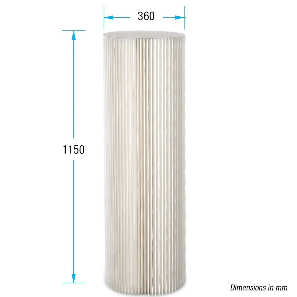This white cylinder pedestal is made from recyclable cardboard, providing a biodegradable, environmentally friendly display at an affordable price that looks great in any location. The plinth has a fluted design and is 1150mm tall, perfect for elevating items at weddings, popup stores, cafes, fine dining restaurants, retail stores, exhibition booths, and more. A patented honeycomb structure within the plinth provides ample support for items place atop the pillar, with up to 50kg total weight able to be placed on this display. The 365mm base diameter takes up little space whilst still highlighting items paced atop the unit!