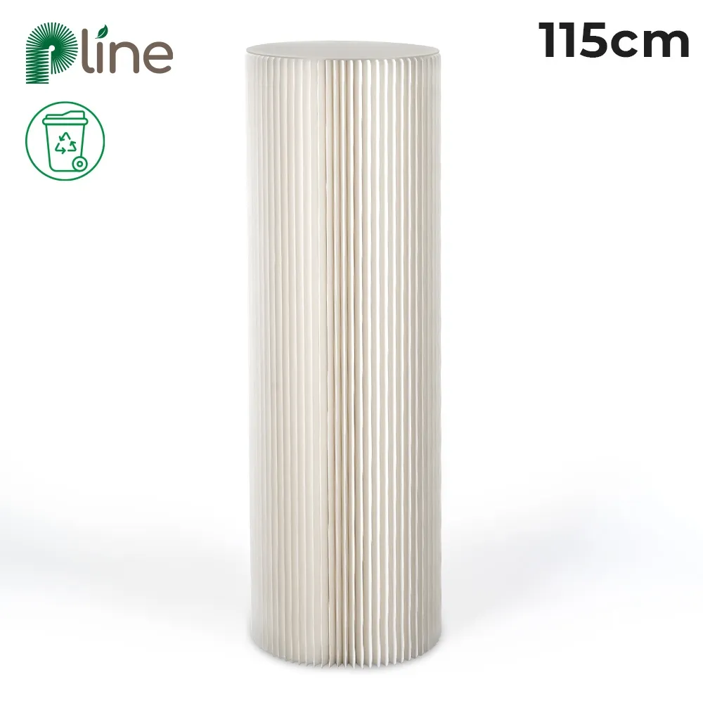 - White cylinder pedestal is 115cm tall & made of recyclable cardboard to be environmentally friendly