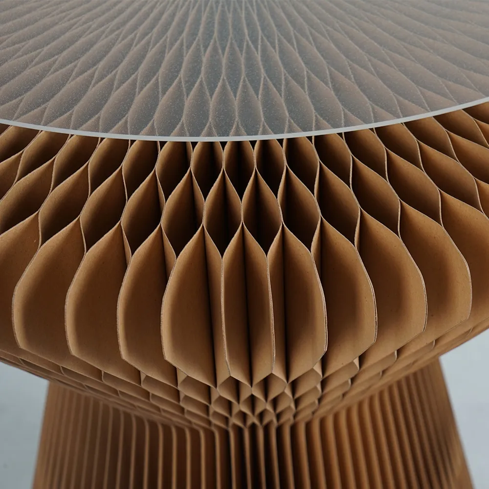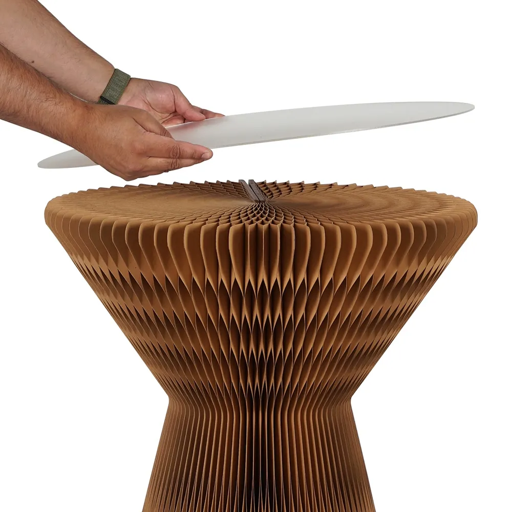 - Accordion table is 70cm tall & made from recyclable cardboard to be environmentally friendly