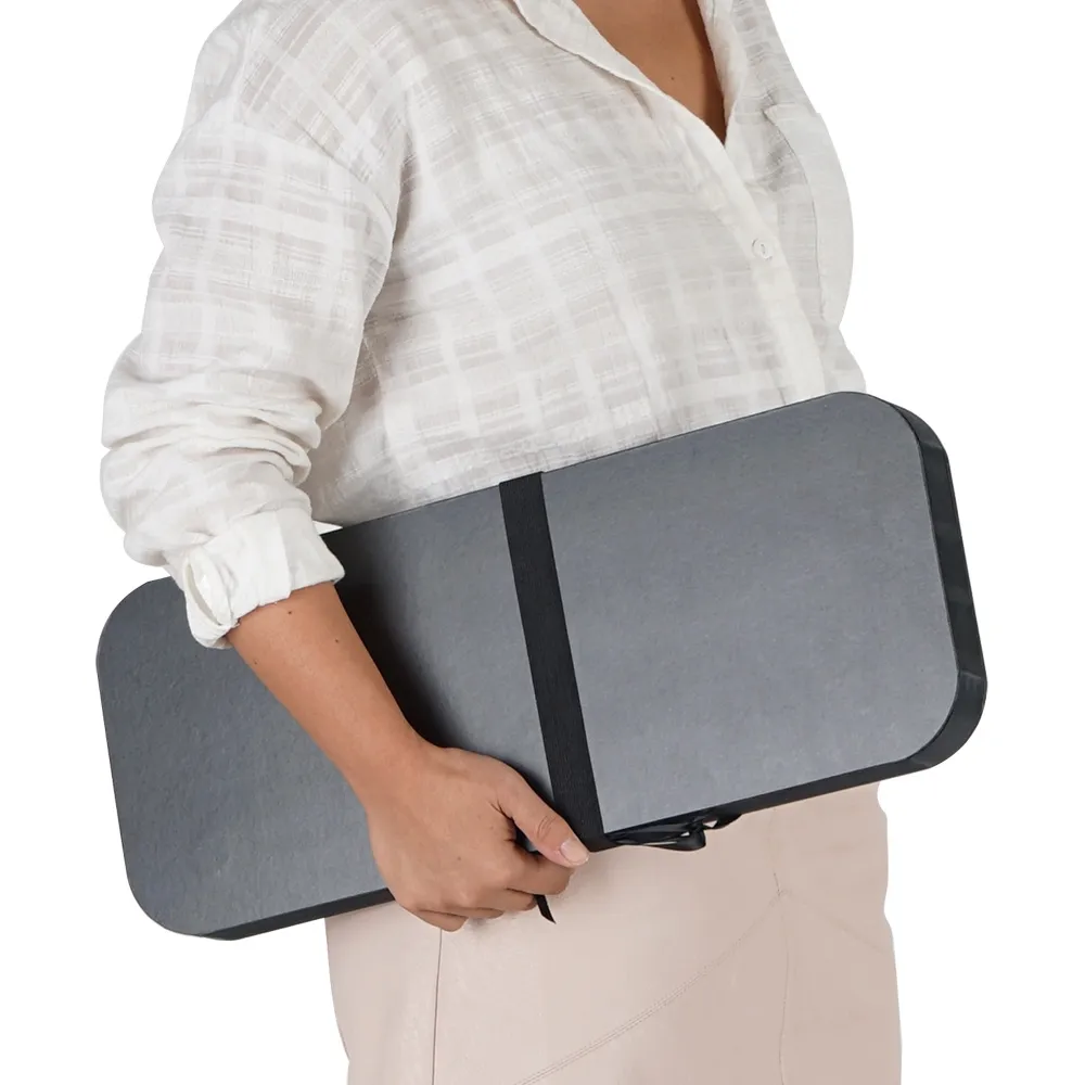 A paper accordion stool, collapsible seating stool has a patented design that combines strength and a modern look in an eco friendly package. The honeycomb structure off the seat not only draws attention for it's unique look, but also allows up to 300kg total to be sat atop the stools! The paper seat is easily collapsed and put together in seconds with no tools needed, as magnetic ends snap together for quick set-up. There is a ribbon attached as well that not only keeps the sides together when set up as a seat, but also prevents the unit from opening when being transported or stored in between uses. This unit is only 18 x 42 x 3cm when closed, making it easy to carry and store stacked together in small space.
