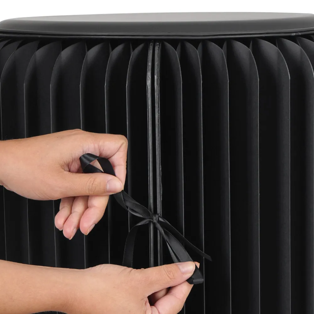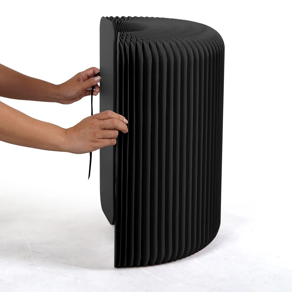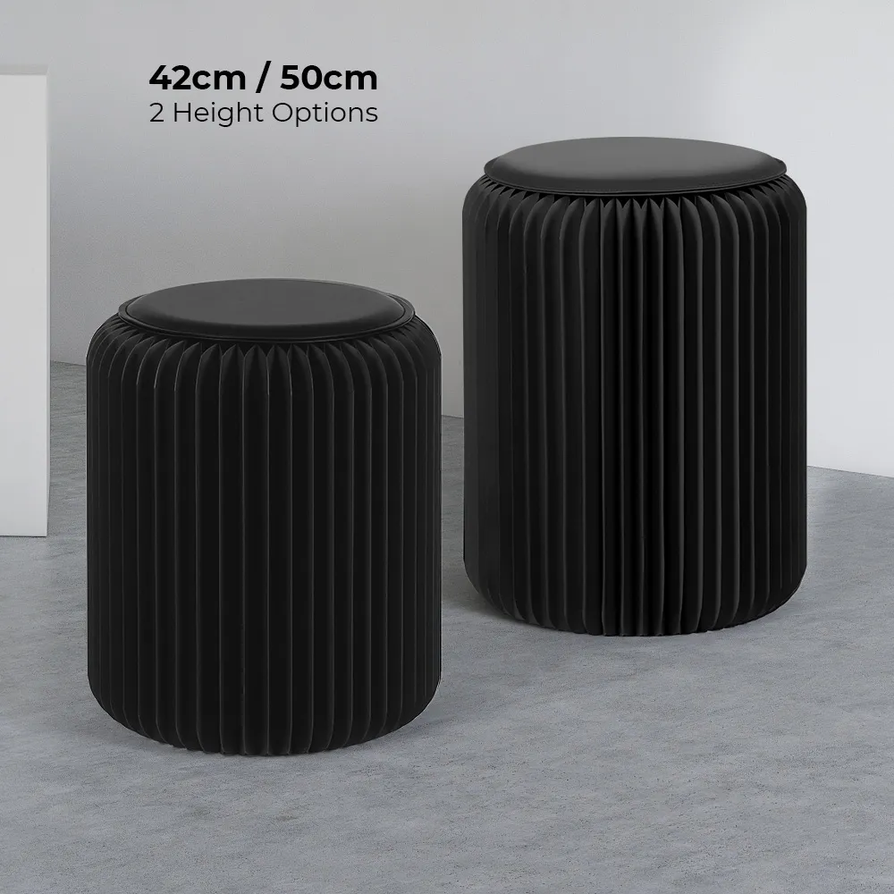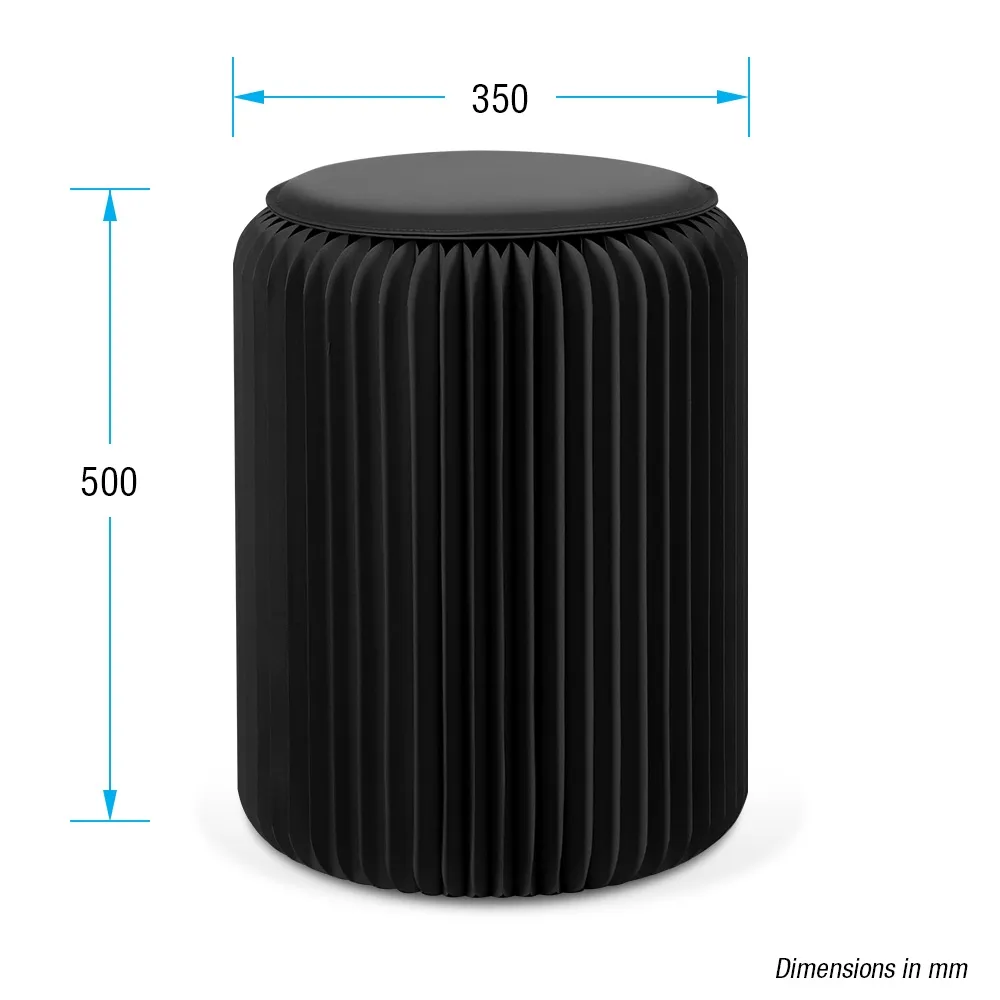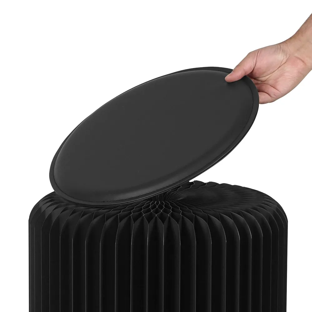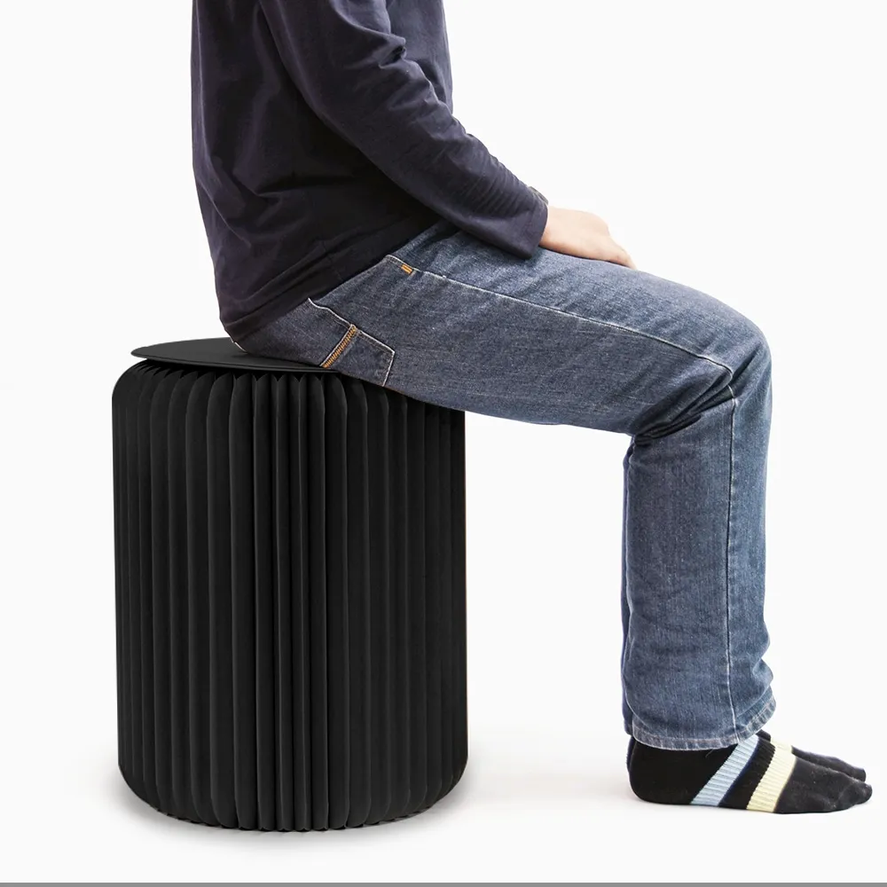 • Collapsible seating stool is 50cm tall and made from black paper for modern look