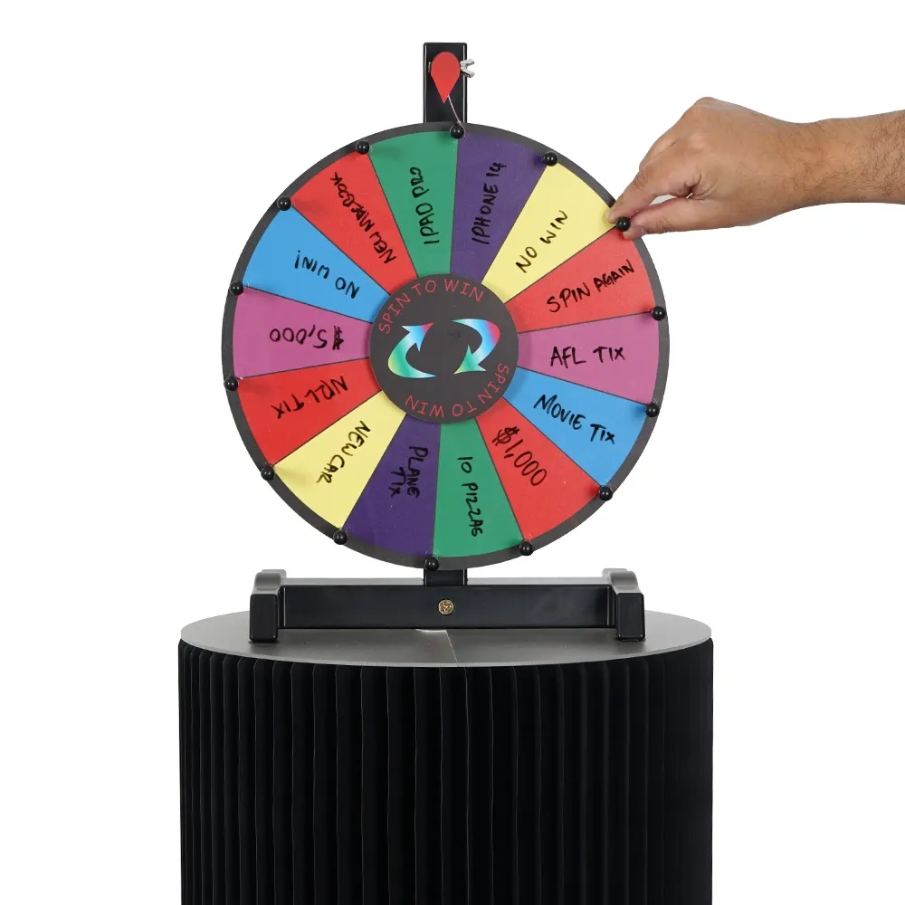 - Raffle wheel features 14 colourful slots that create an eye-catching display when spun