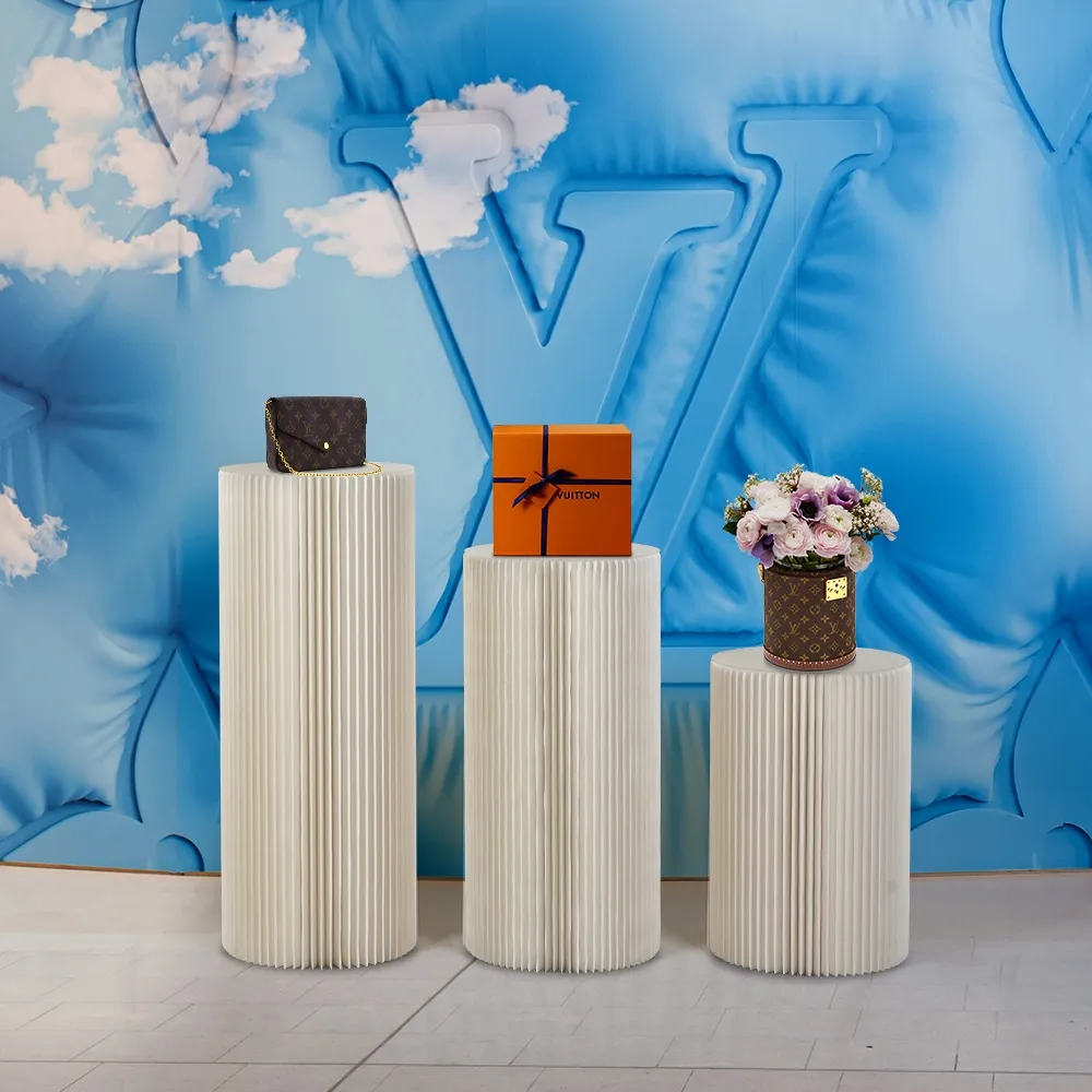 - Fluted pedestals are environmentally friendly, made from recyclable white cardboard