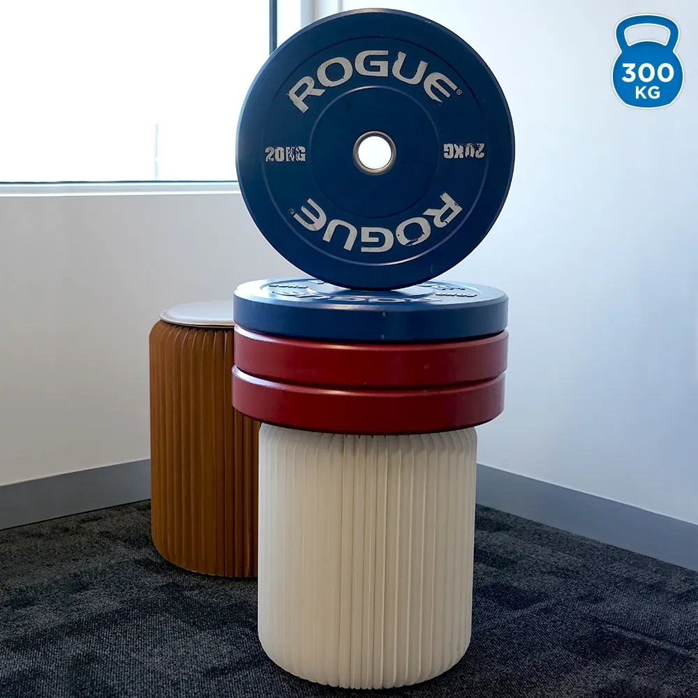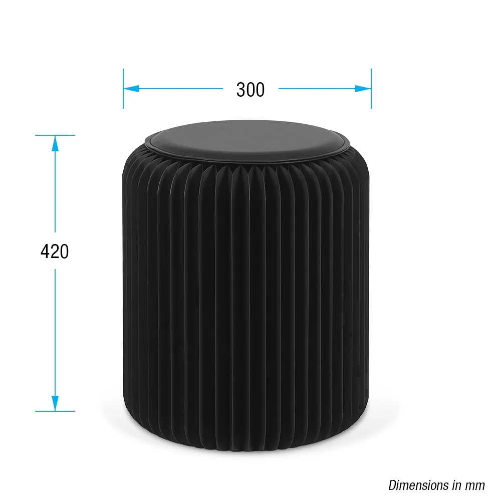 - (2) Black paper stools are each 42cm tall and supportive of up to 300kg in total weight