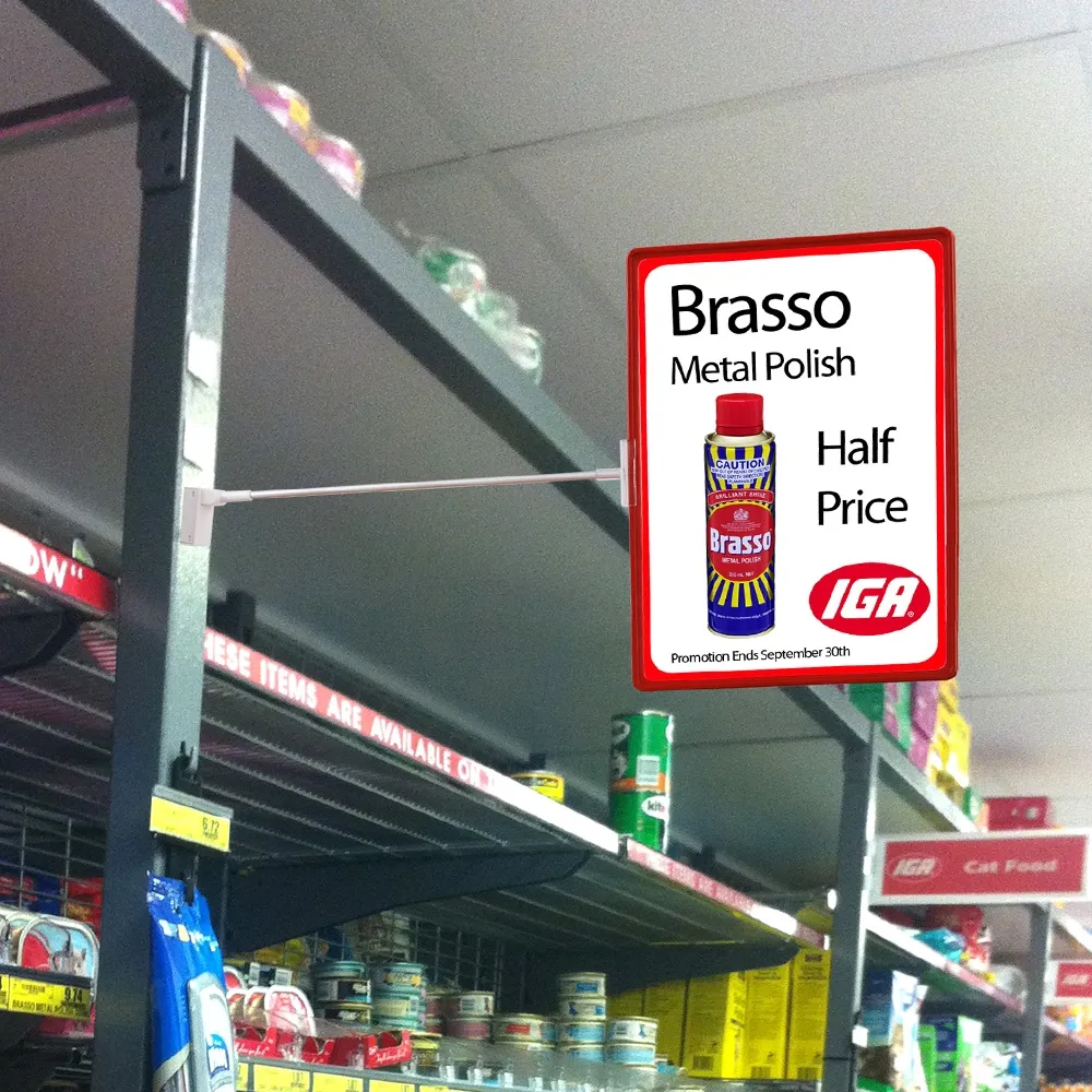 A3 red display is a great marketing tool for advertising price, promotions or product information around your store. The tall pole design allows your poster to be seen from multiple directions. The magnetic base allows you to attach your signage to any metal surfaces such as floor stands and shelving anywhere around your store. The holder also has a hinge that can be adjusted to your desired angle to best fit your needs!