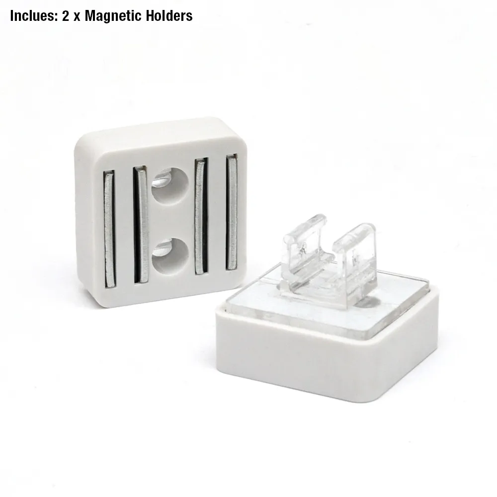 - Two magnetic holders attach signage to store fixtures securely
