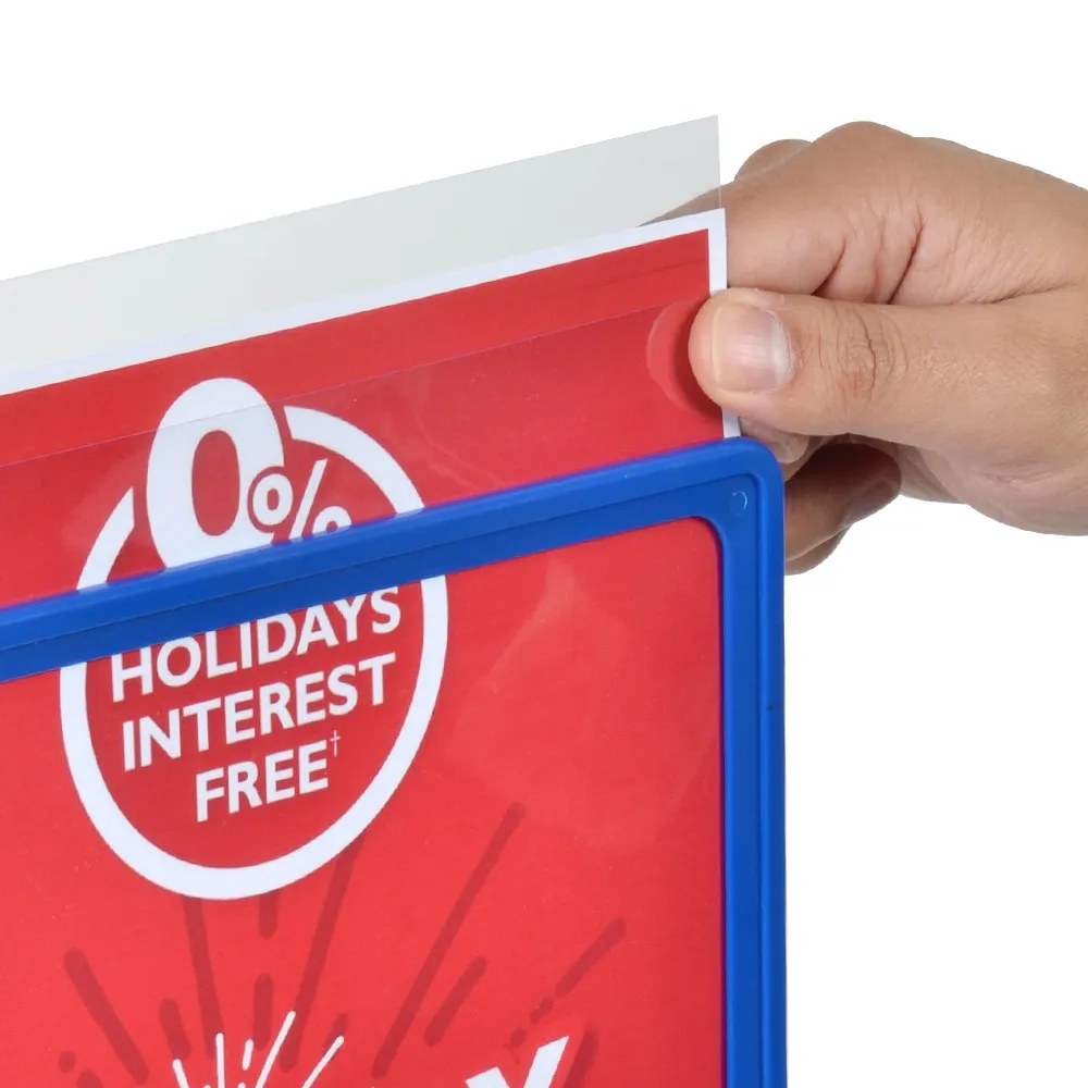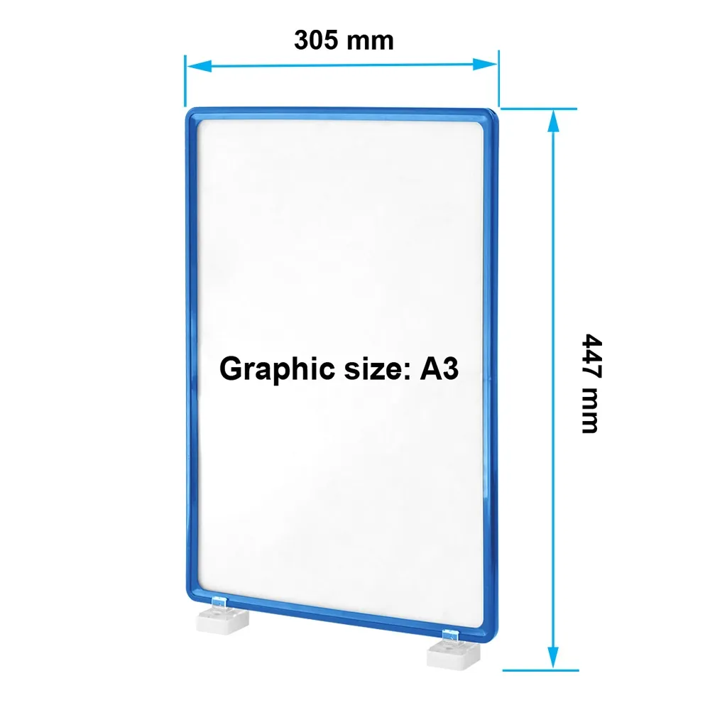 POS magnetic sign can be displayed in portrait or landscape orientation with the frame holding A3 graphics 420 x297mm in size. This display is an instore marketing staple for any retail business. The double-sided frame maximises exposure to your customers. Additionally, this blue frame comes with 2 clear lenses to help keep your display looking professional and dust free at all times!