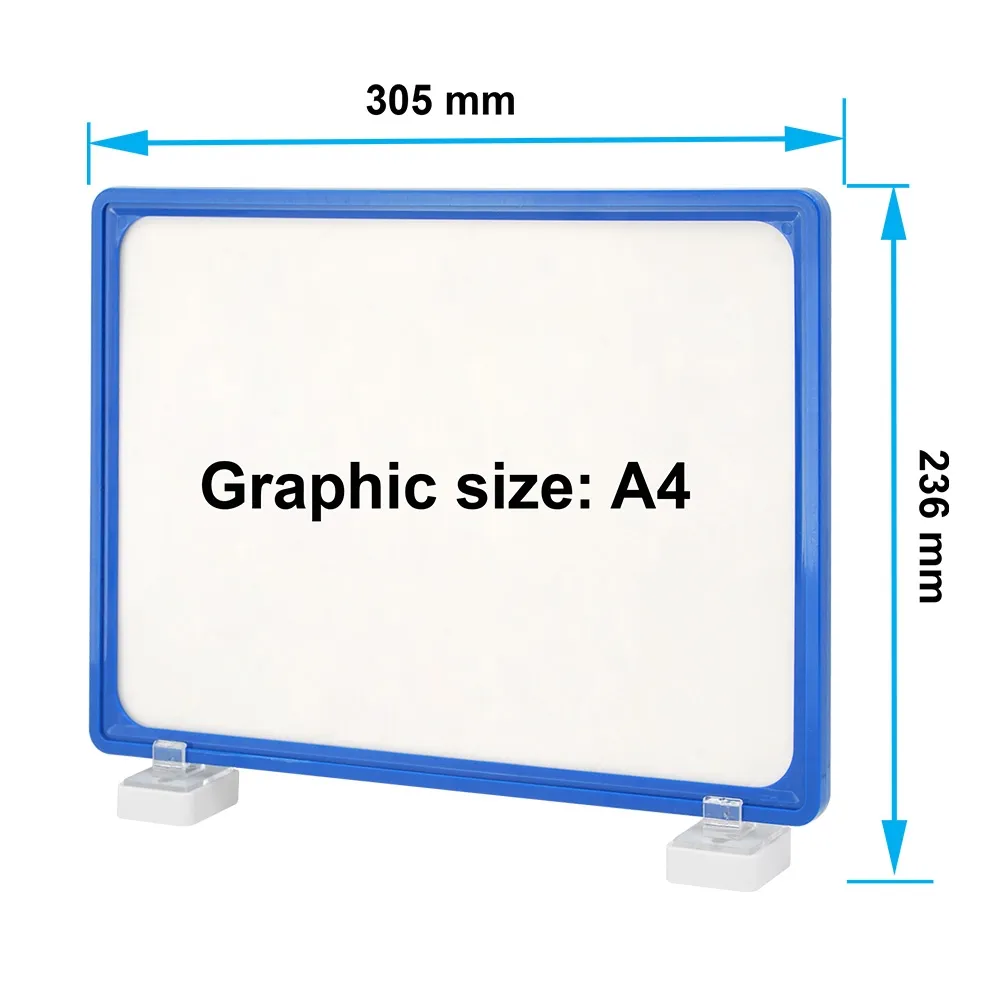 The blue POS sign fits A4 graphics 297 x 210mm in both portrait or landscape orientation. The simple slip in design allows your staff to change our graphics in seconds! This convenient display is a staple for any retail marketing in-store, it is inexpensive and durable! Shipped from our Melbourne warehouse to anywhere in Australia, order before 2PM AEST to get same day despatch, only at Slimline Warehouse!