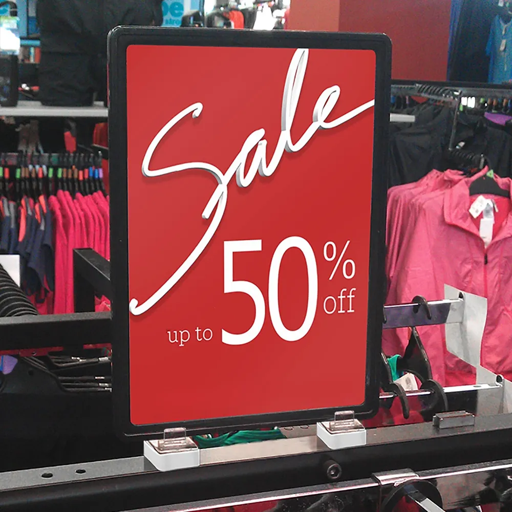 - Black price display has magnetic holders to securely attach to different store fixtures