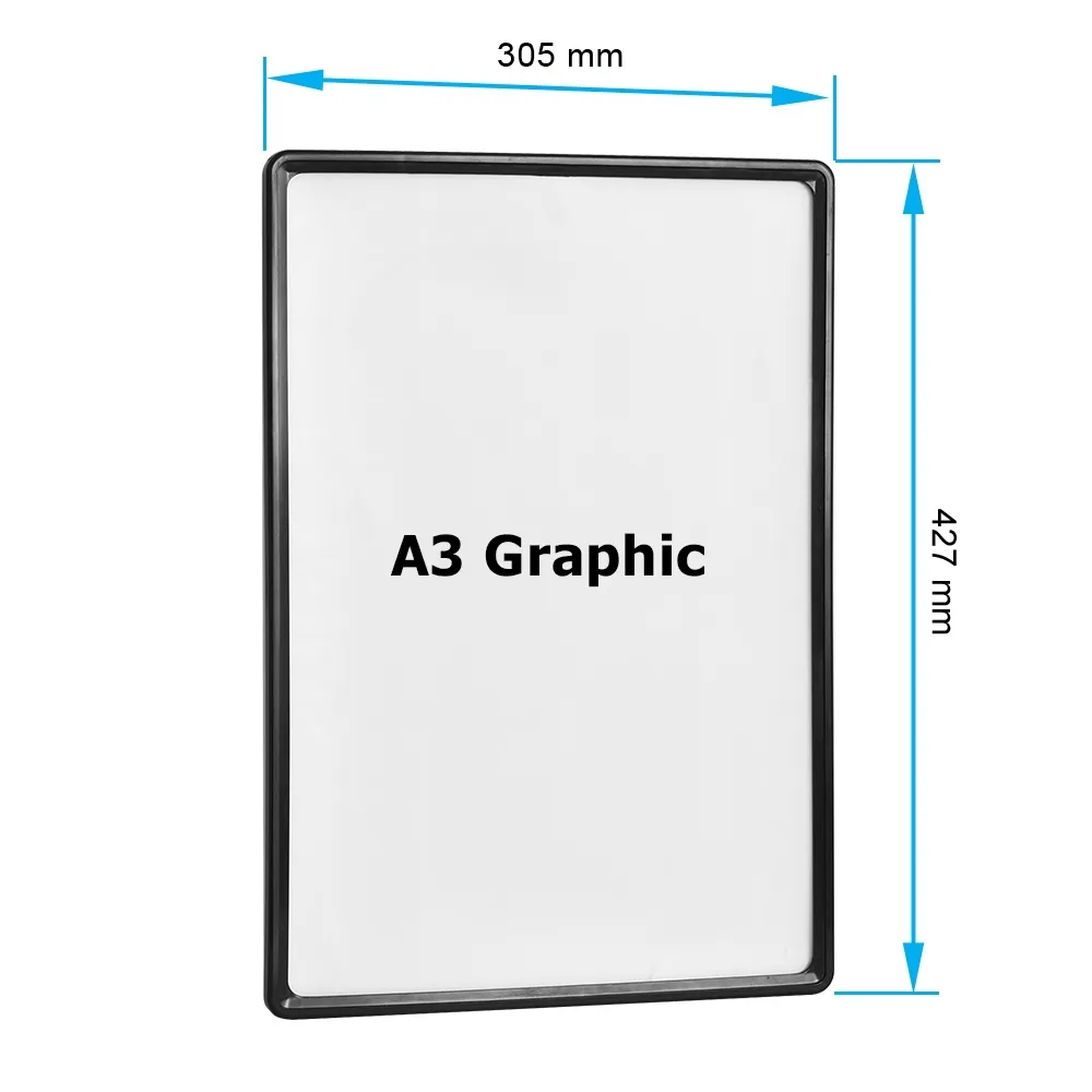 - Dual-sided frame holds an A3 (420 x 297mm) in portrait or landscape orientation for versatility