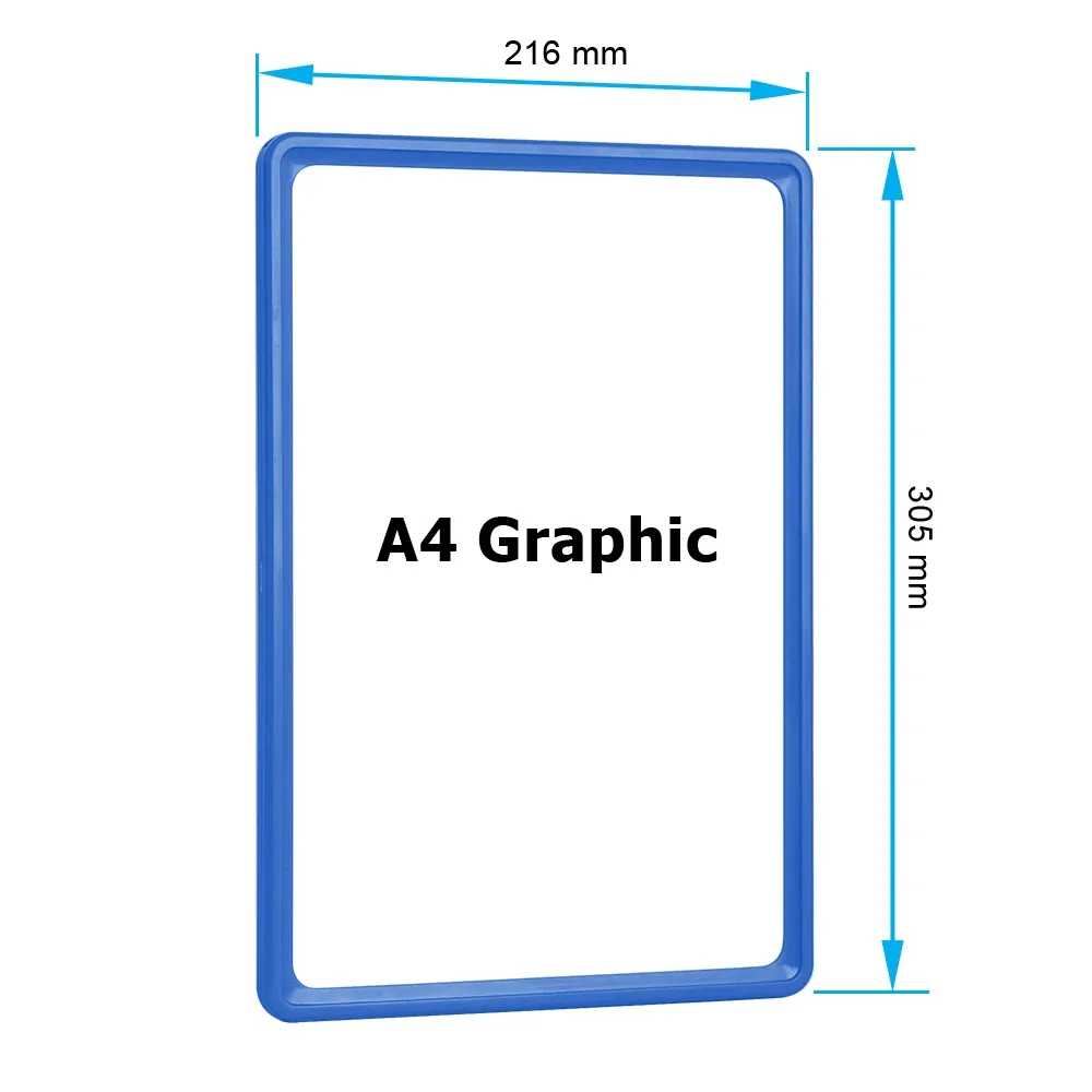 - Designed to hold A4 graphics (297x210mm) in portrait or landscape orientation