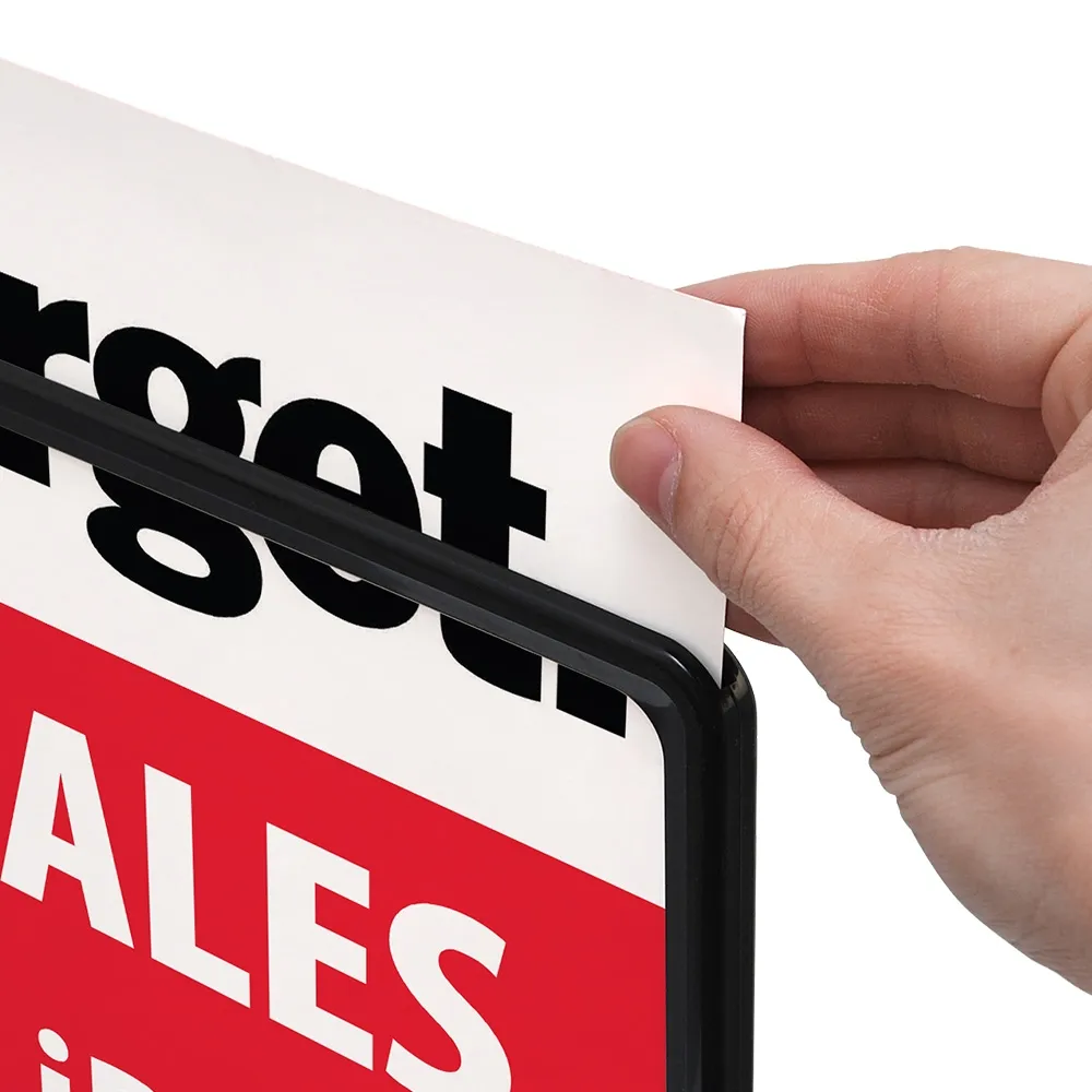 Point of sale sign in black comes with two clear lenses included with the display that help protect graphics from gathering grime and dust while on display to maintain a professional appearance. Changing out posters with these displays is extremely easy, with no tools required! The slide-in design allows for quick changes in under a minute that leaves employees plenty of time to focus on more important tasks. Order before 2 PM AEST for same day despatch to anywhere in Australia!