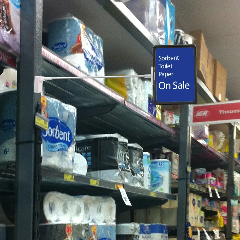 - Point of sale sign in black for pricing, product information and promotions