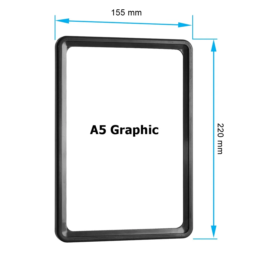 - Frame designed to hold A5 (210 x 148mm) graphics in portrait or landscape format
