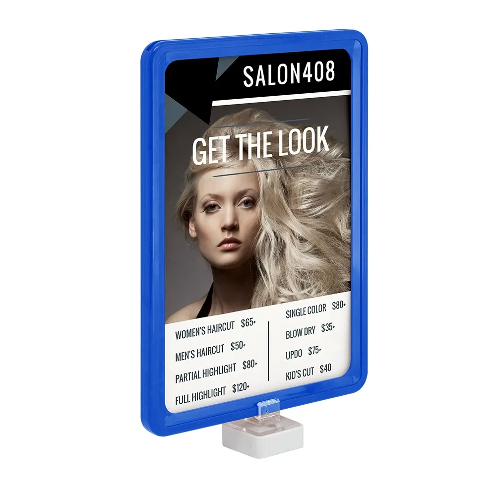 Blue A5 frame for retail fits 210 x 148mm graphics in landscape or portrait orientation depending on your chosen graphics. Changing out your graphics is very quick and easy. Simply slide in and out your graphics as needed, allowing you to spend time on more important tasks. This signage can be used on its own or in conjunction with hooks, stands and more! Place your order before 2 PM AEST to receive same day despatch on in-stock products to anywhere in Australia!